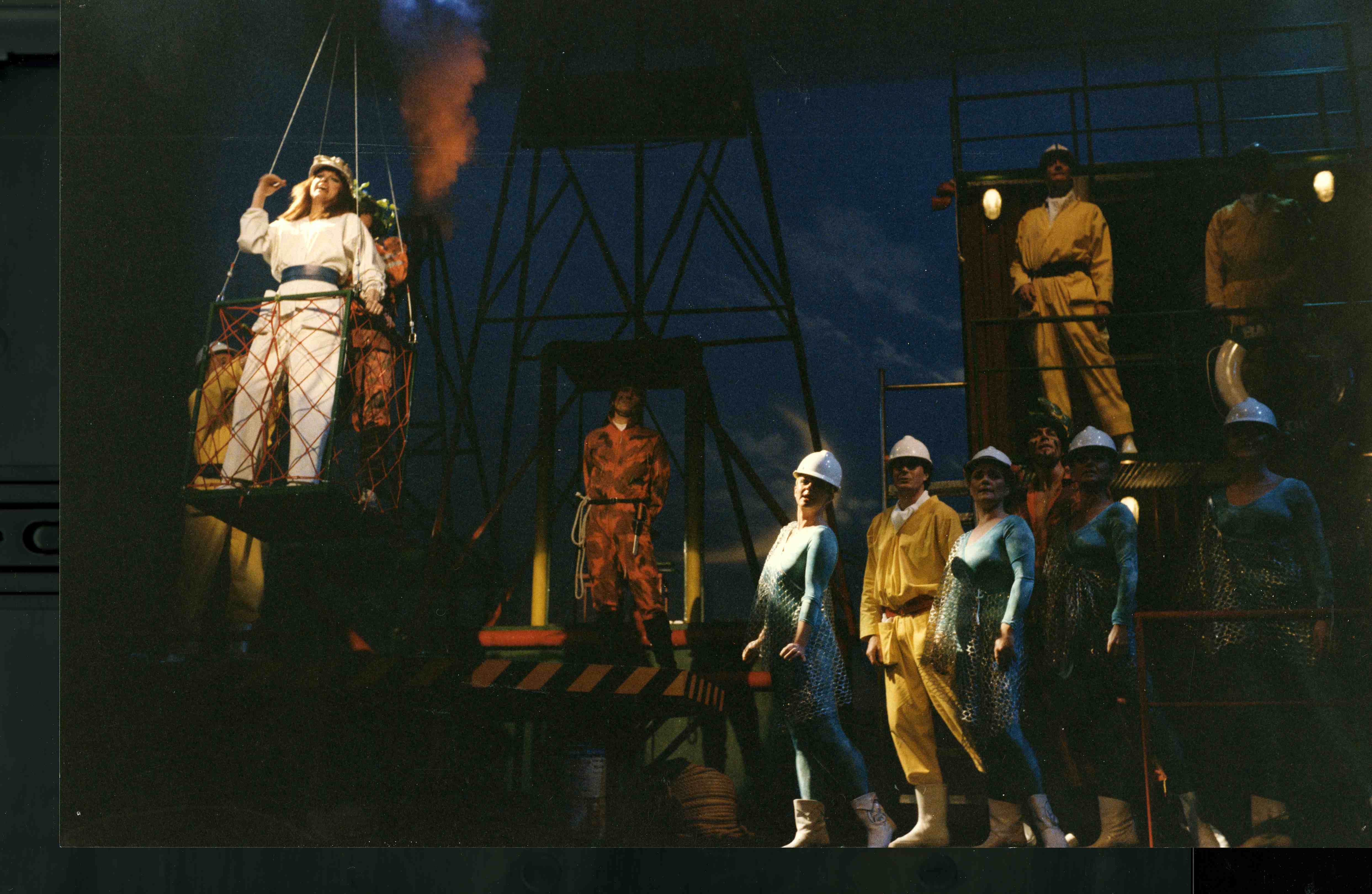Fotografi fra Oslo Nye Teaters produksjon Balder - en oljerevy i to utblåsninger (1984).