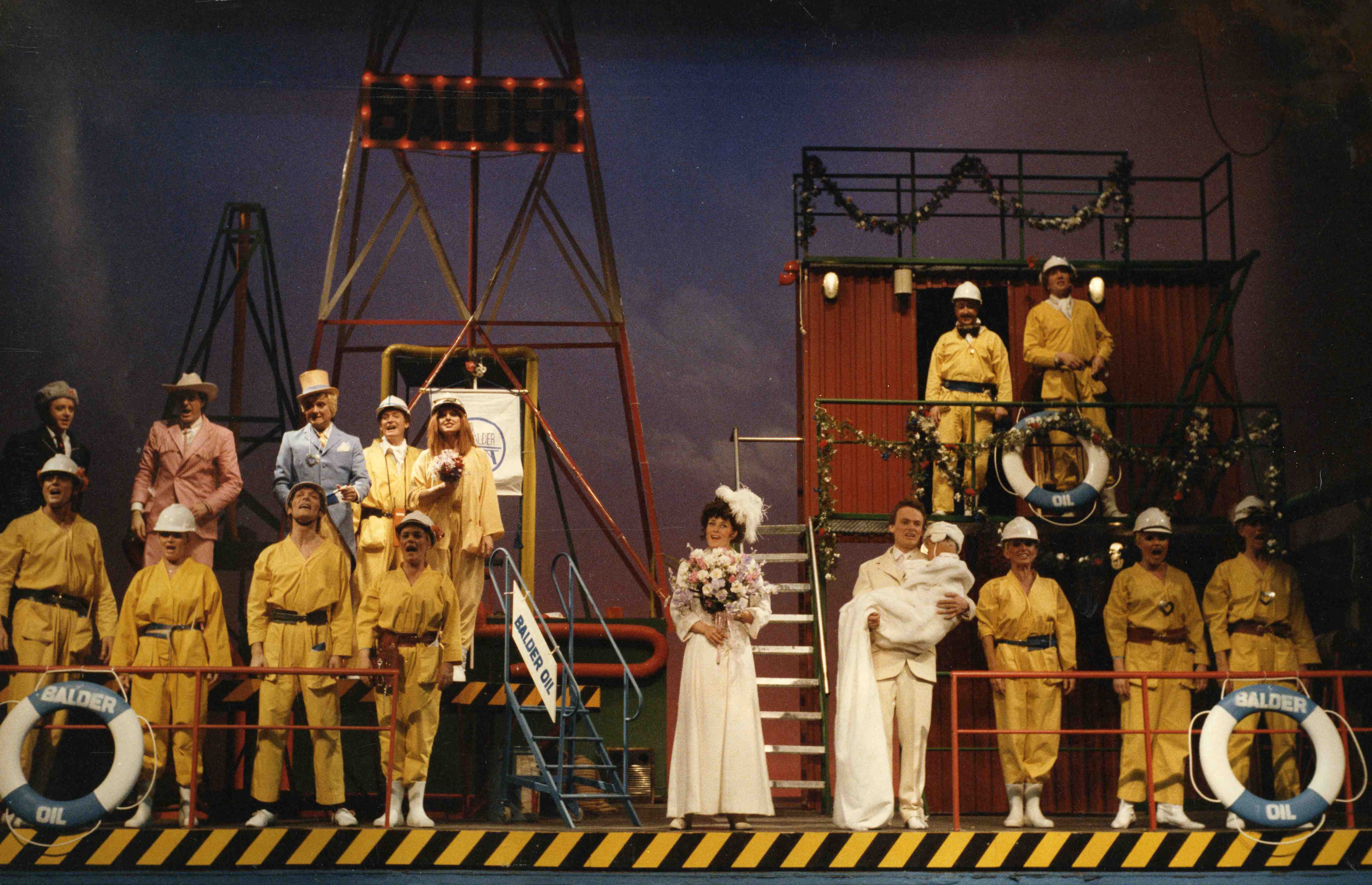 Fotografi fra Oslo Nye Teaters produksjon Balder - en oljerevy i to utblåsninger (1984).