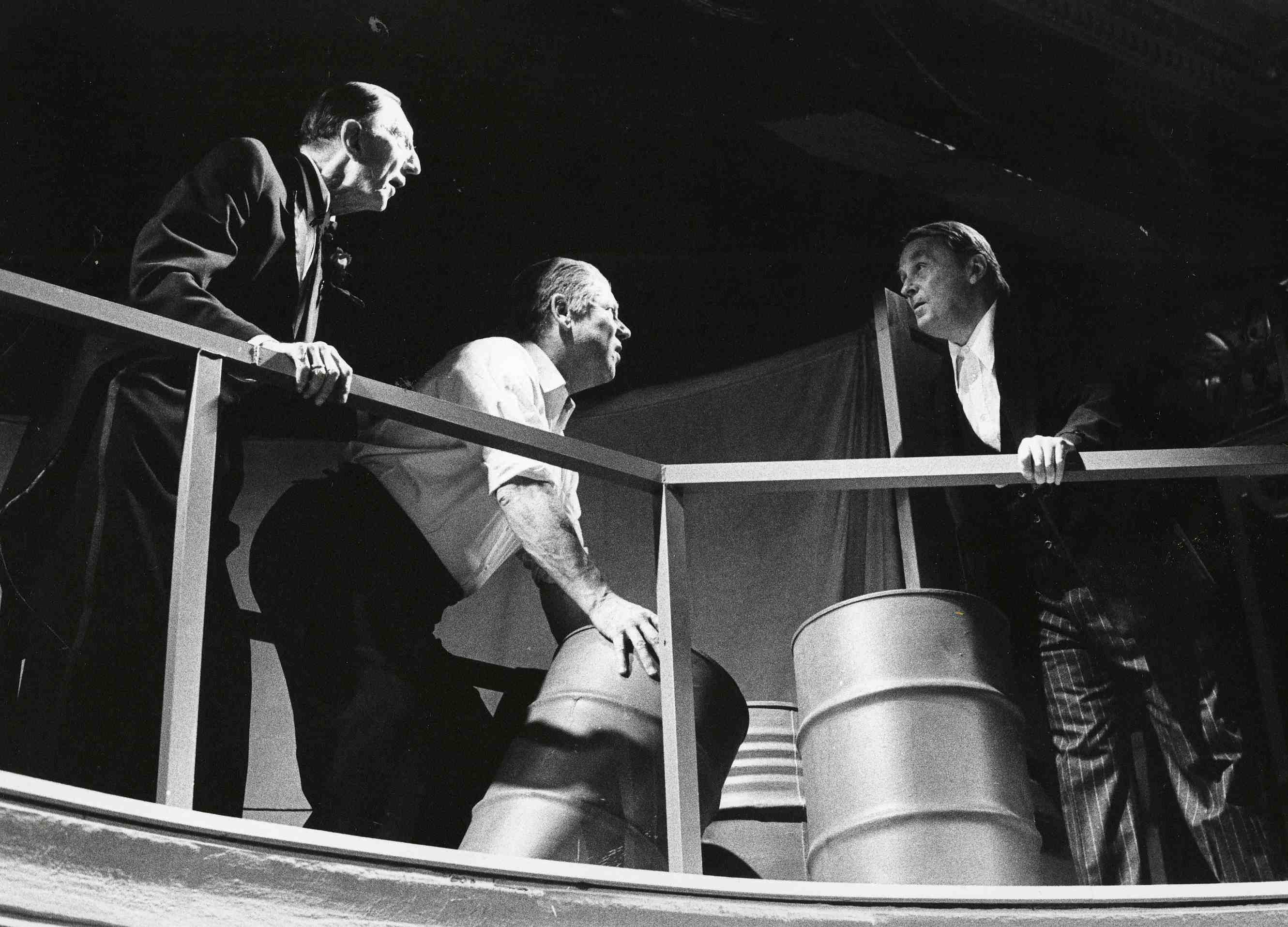 Fotografi fra Oslo Nye Teaters produksjon Biedermann og brannstifterne (1978).