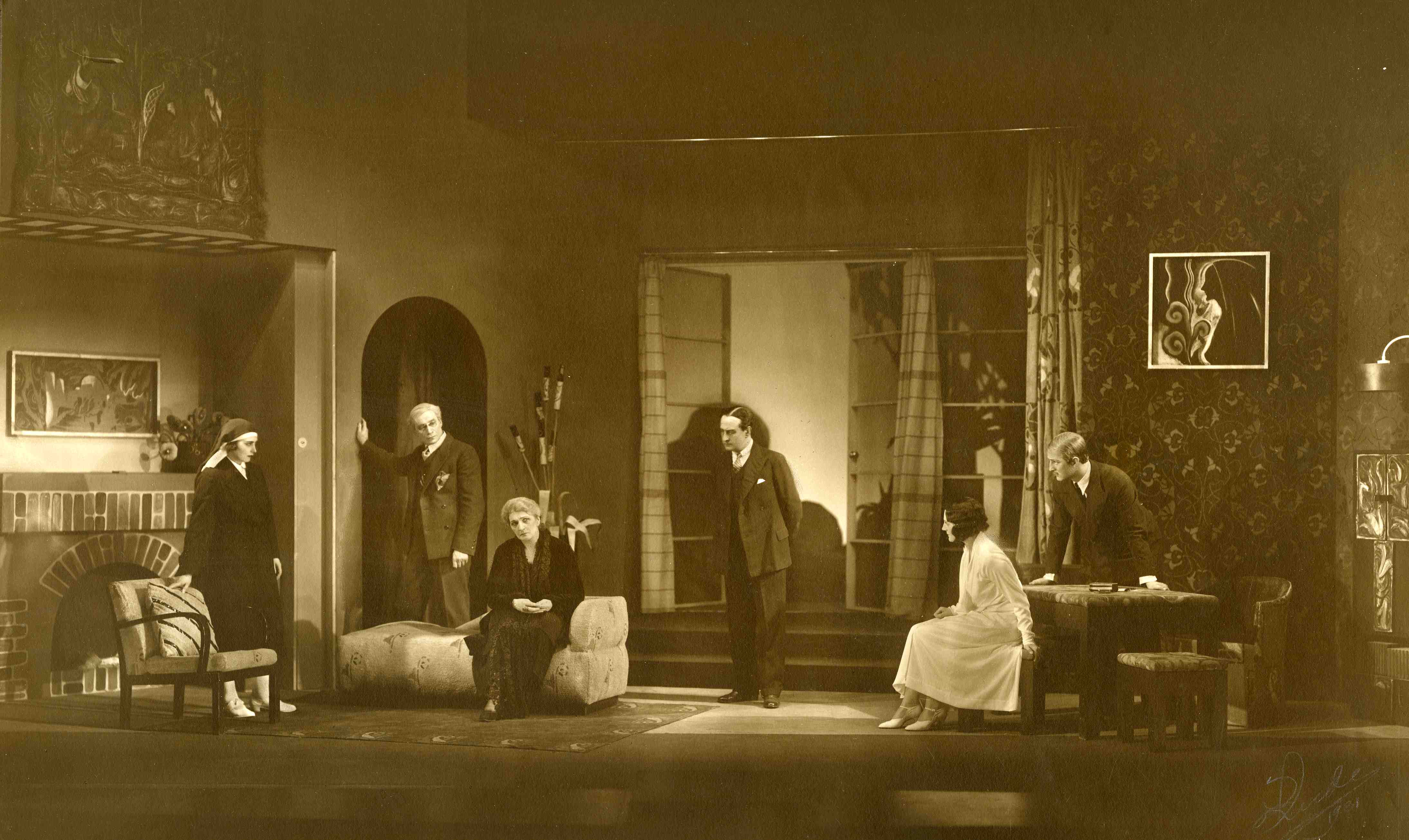 Fotografi fra Det Nye Teaters produksjon Den hellige ild (1931)