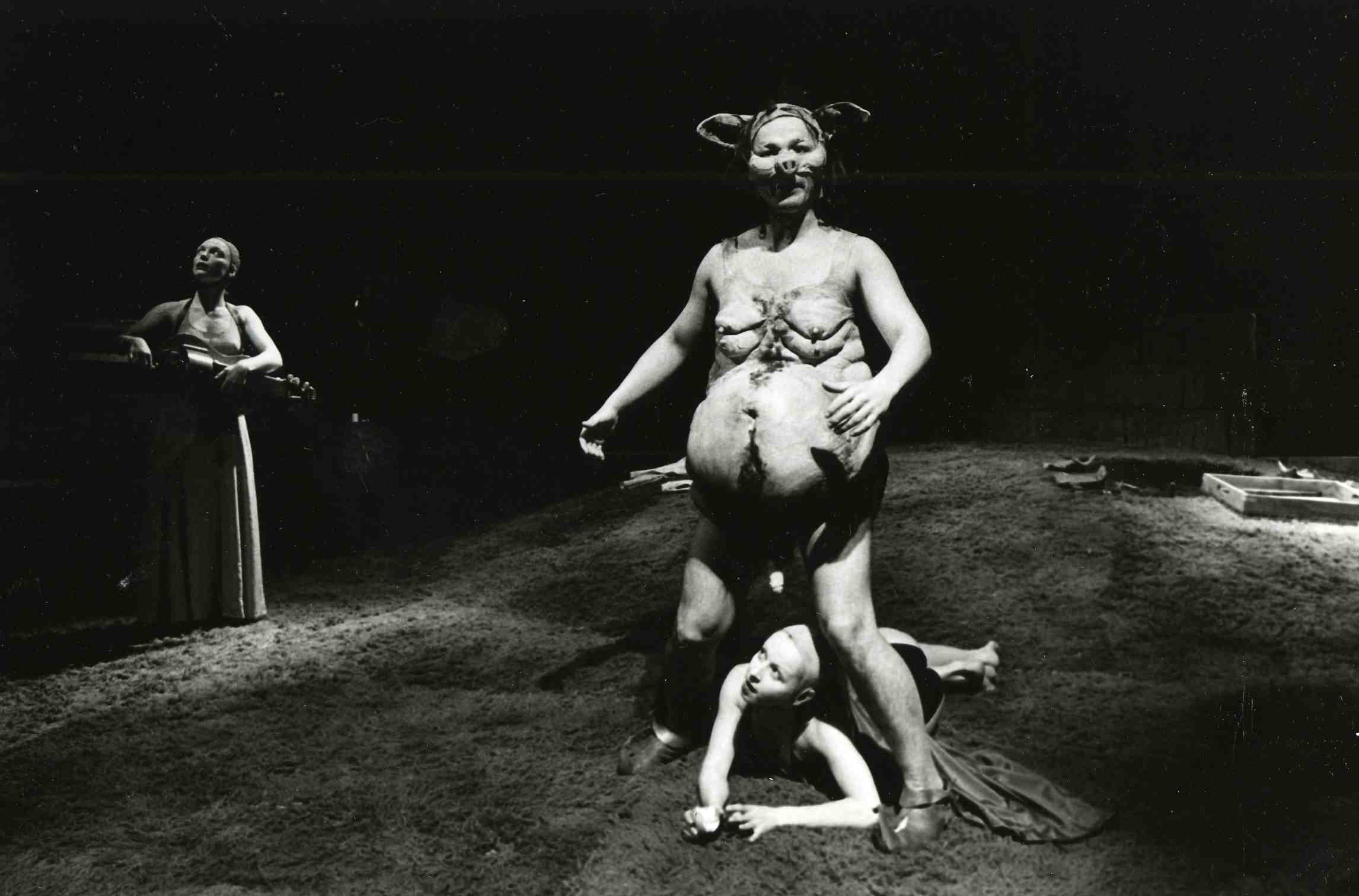 Fotografi fra Oslo Nye Teaters produksjon Dobbel nytelse (1990).