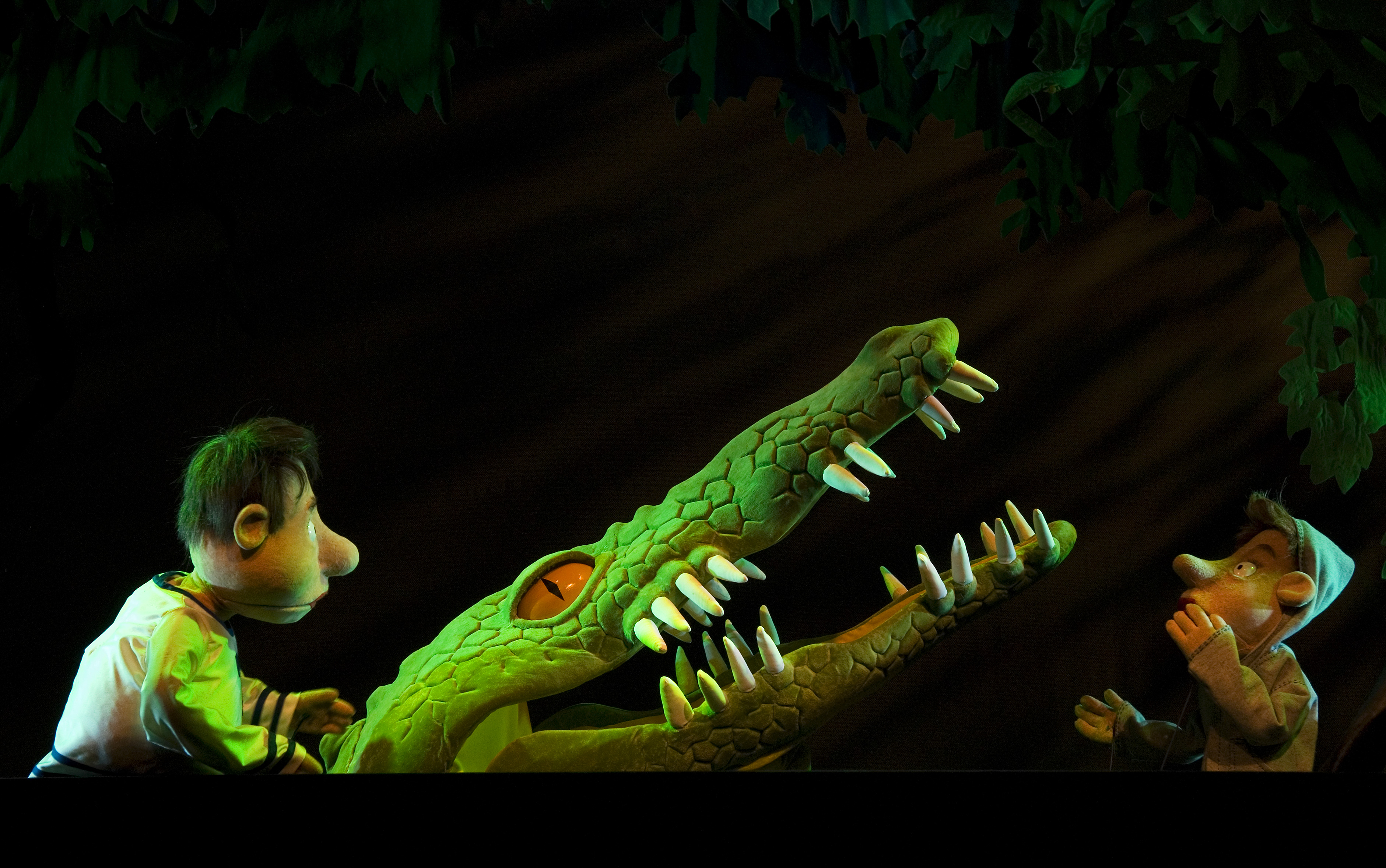 Fotografi fra Riksteatrets produksjon Jorden rundt på 80 minutter (2006)