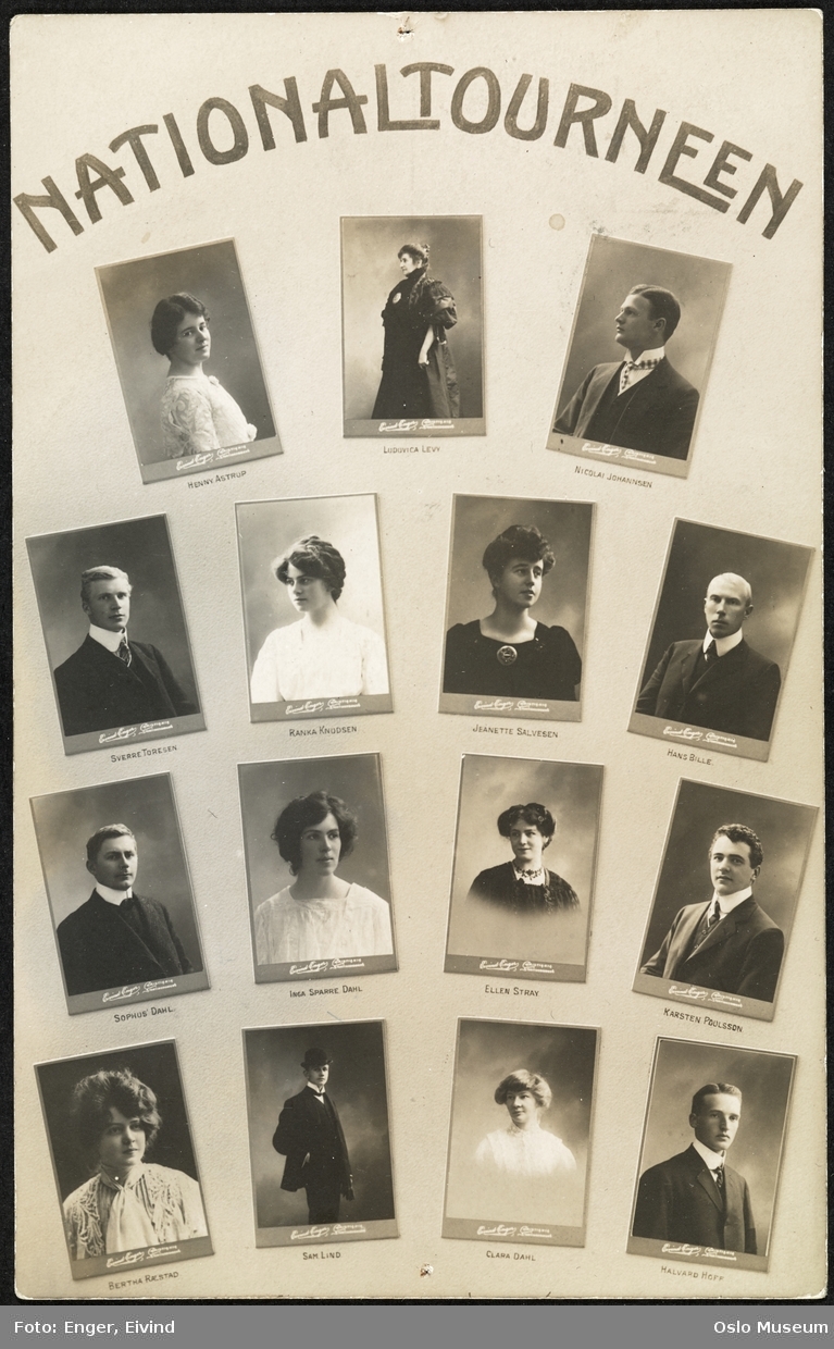 Fotomontasje av Nationatourneens skuespillere i 1907.