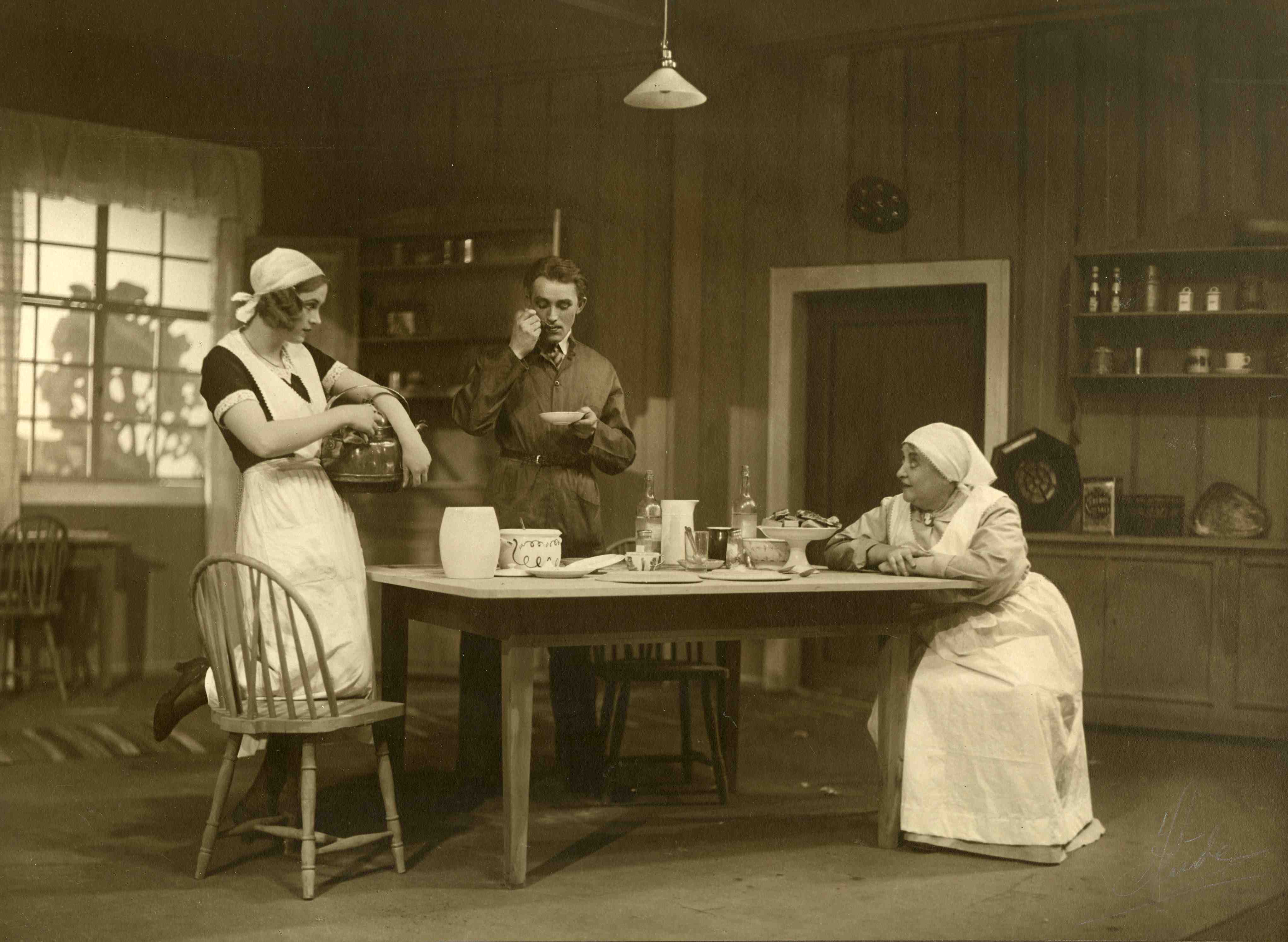 Fotografi fra Det Nye Teaters produksjon Vi som går kjøkkenveien (1932)