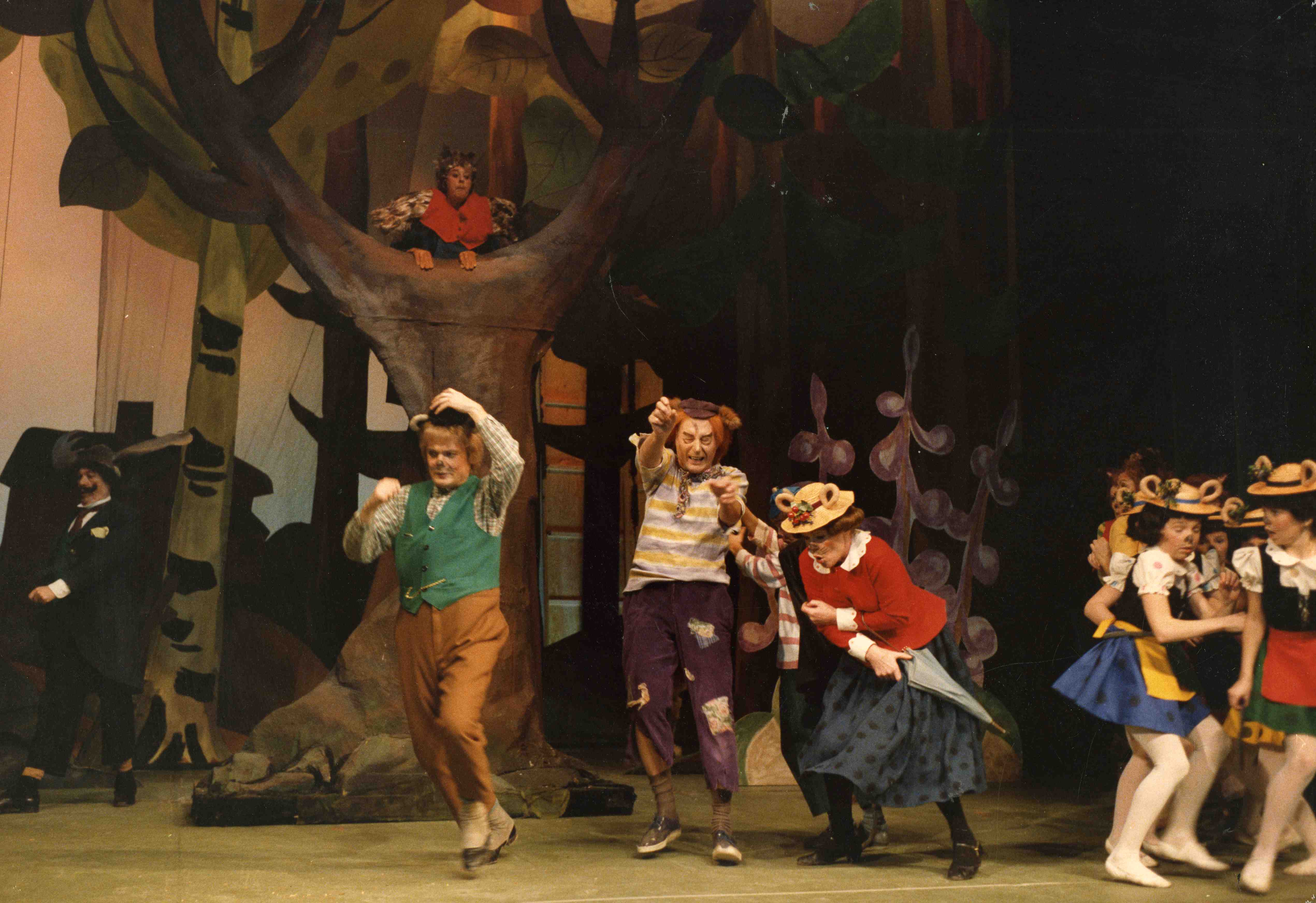 Fotografi fra Oslo Nye Teaters produksjon Dyrene i Hakkebakkeskogen (1982/83).