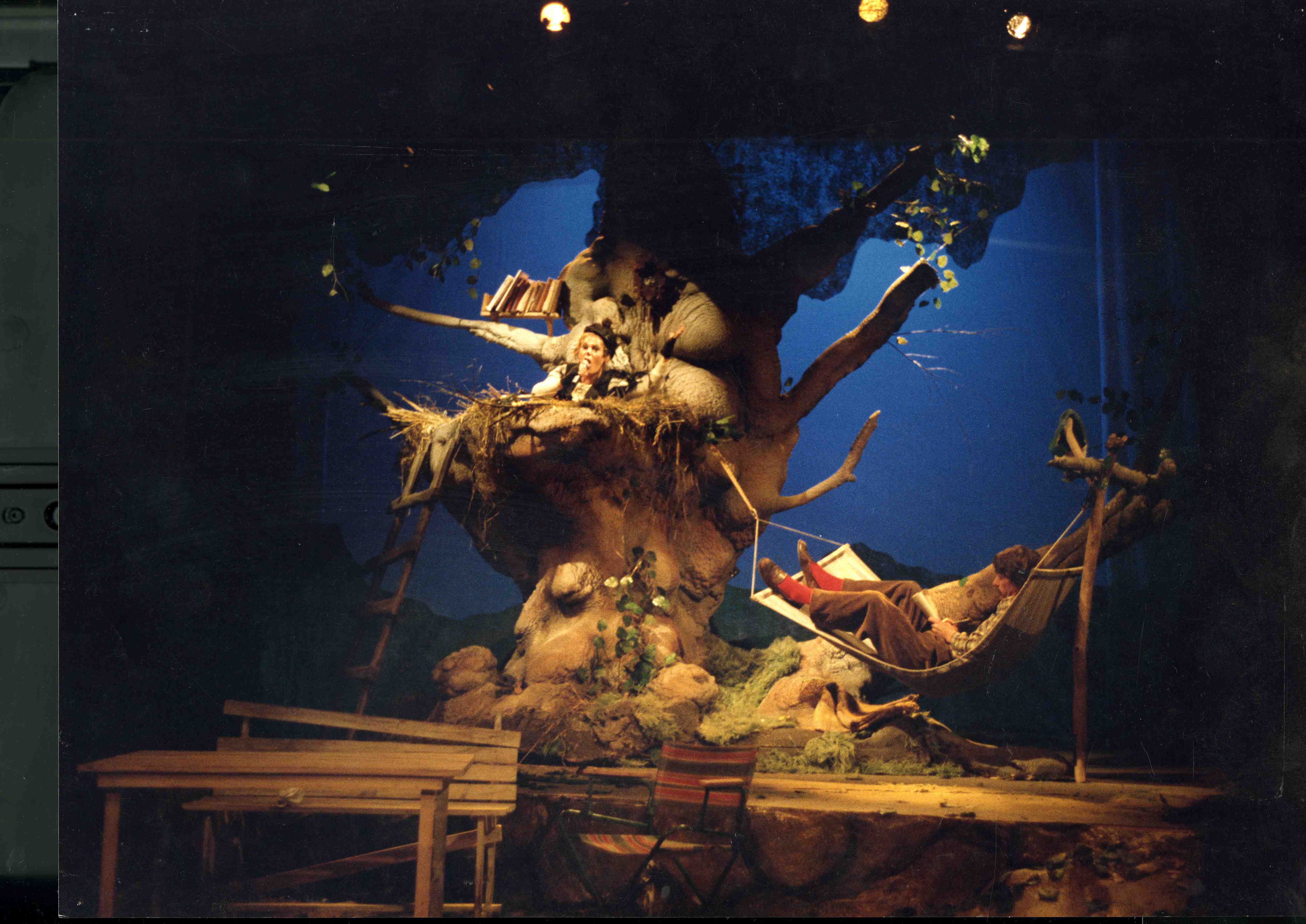 Fotografi fra Oslo Nye Teaters produksjon Flyvende fru Rosenkranz (1983).