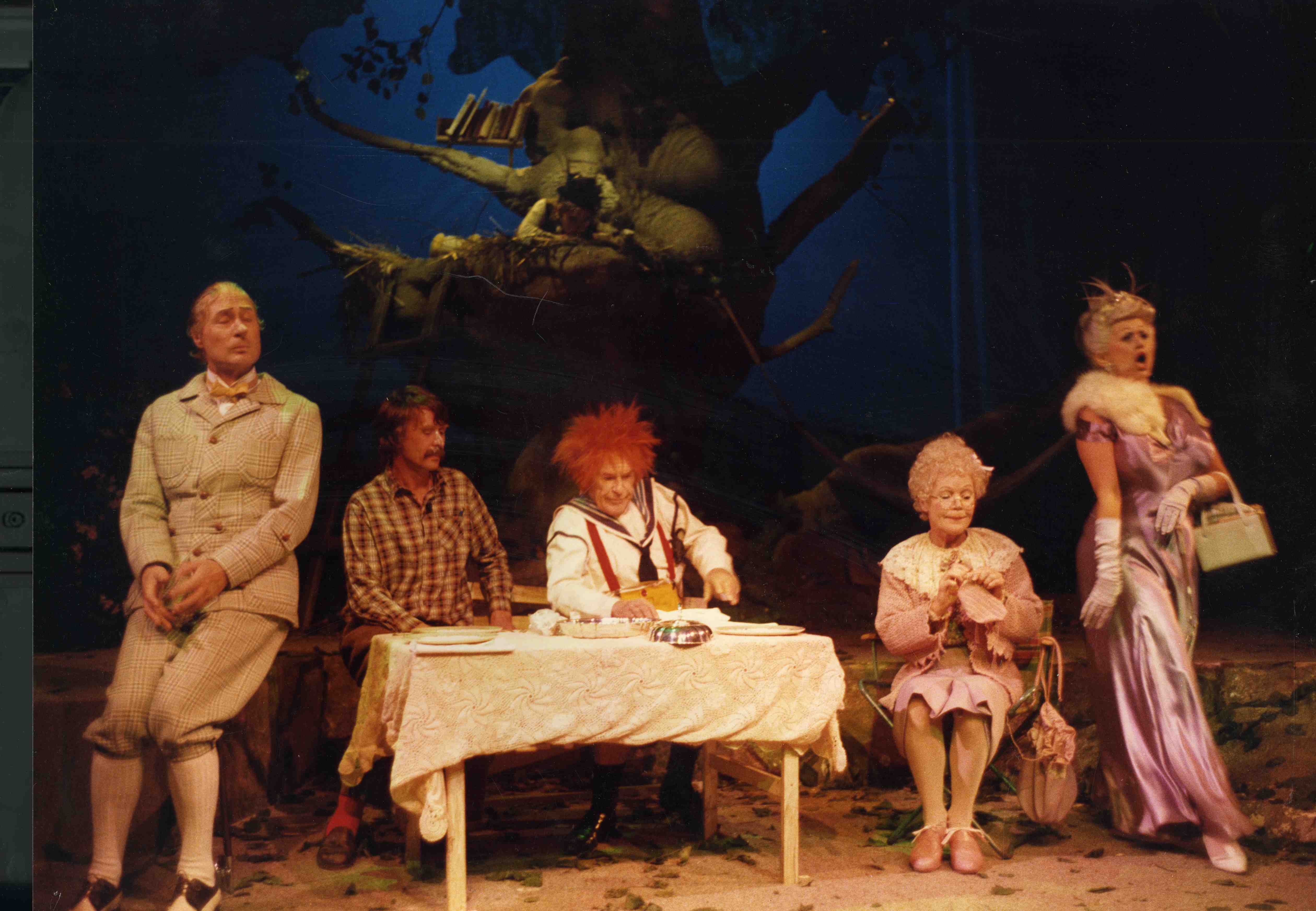 Fotografi fra Oslo Nye Teaters produksjon Flyvende fru Rosenkranz (1983).