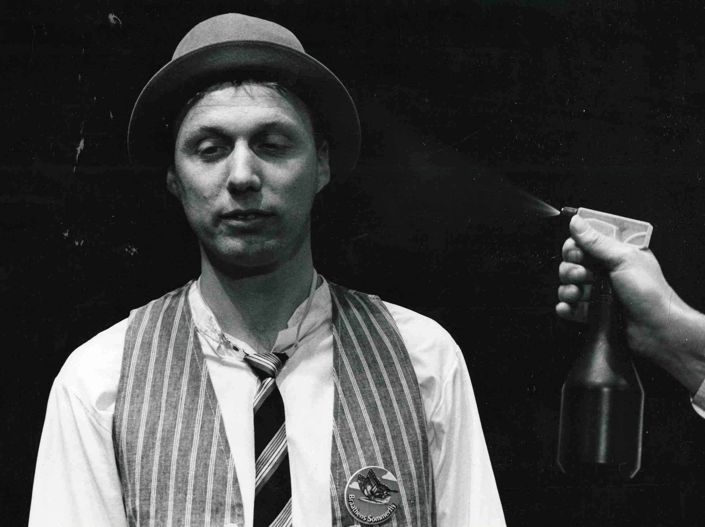 Fotografi fra Oslo Nye Teaters produksjon Frosk i taklampa (1983).