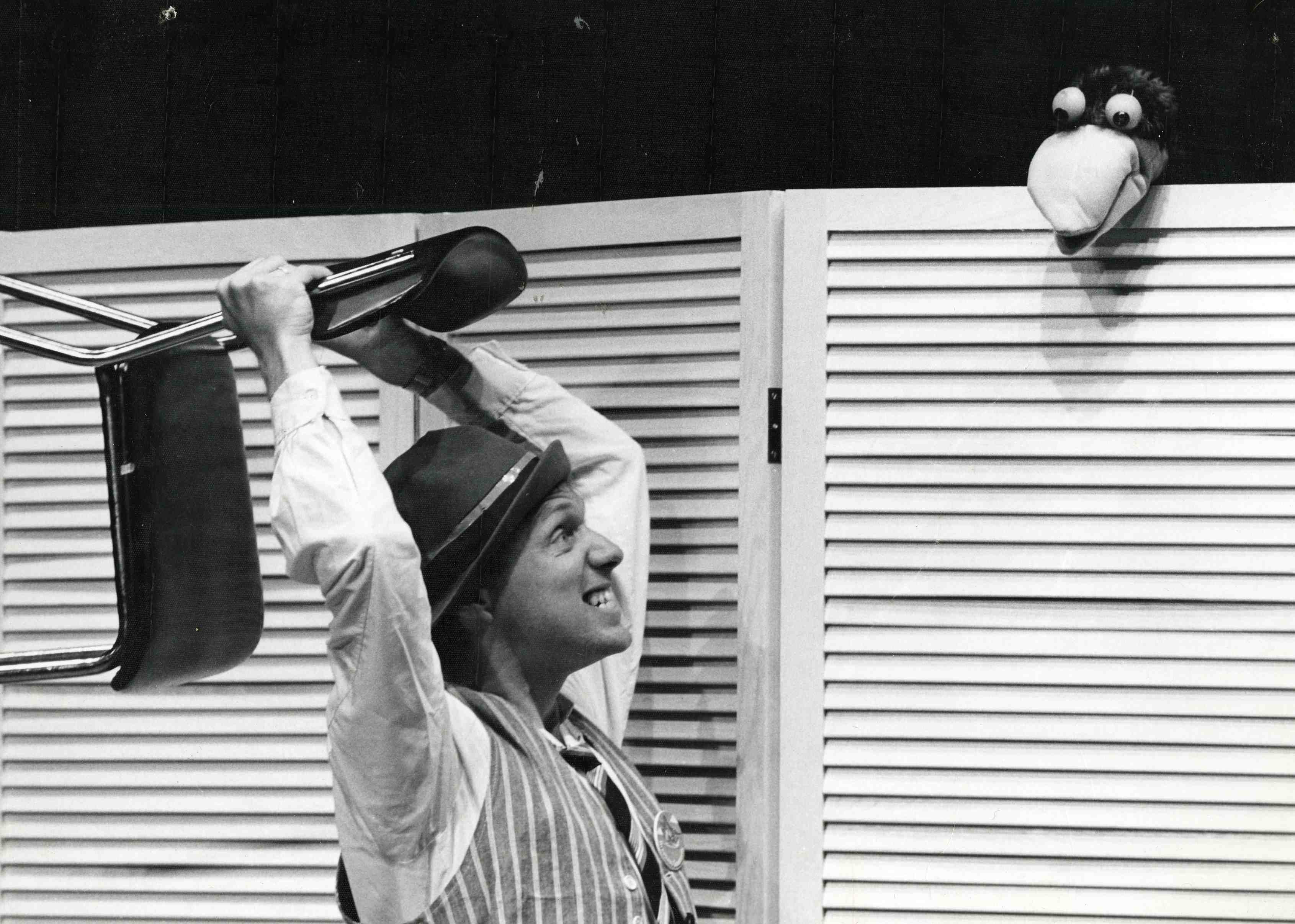 Fotografi fra Oslo Nye Teaters produksjon Frosk i taklampa (1983).