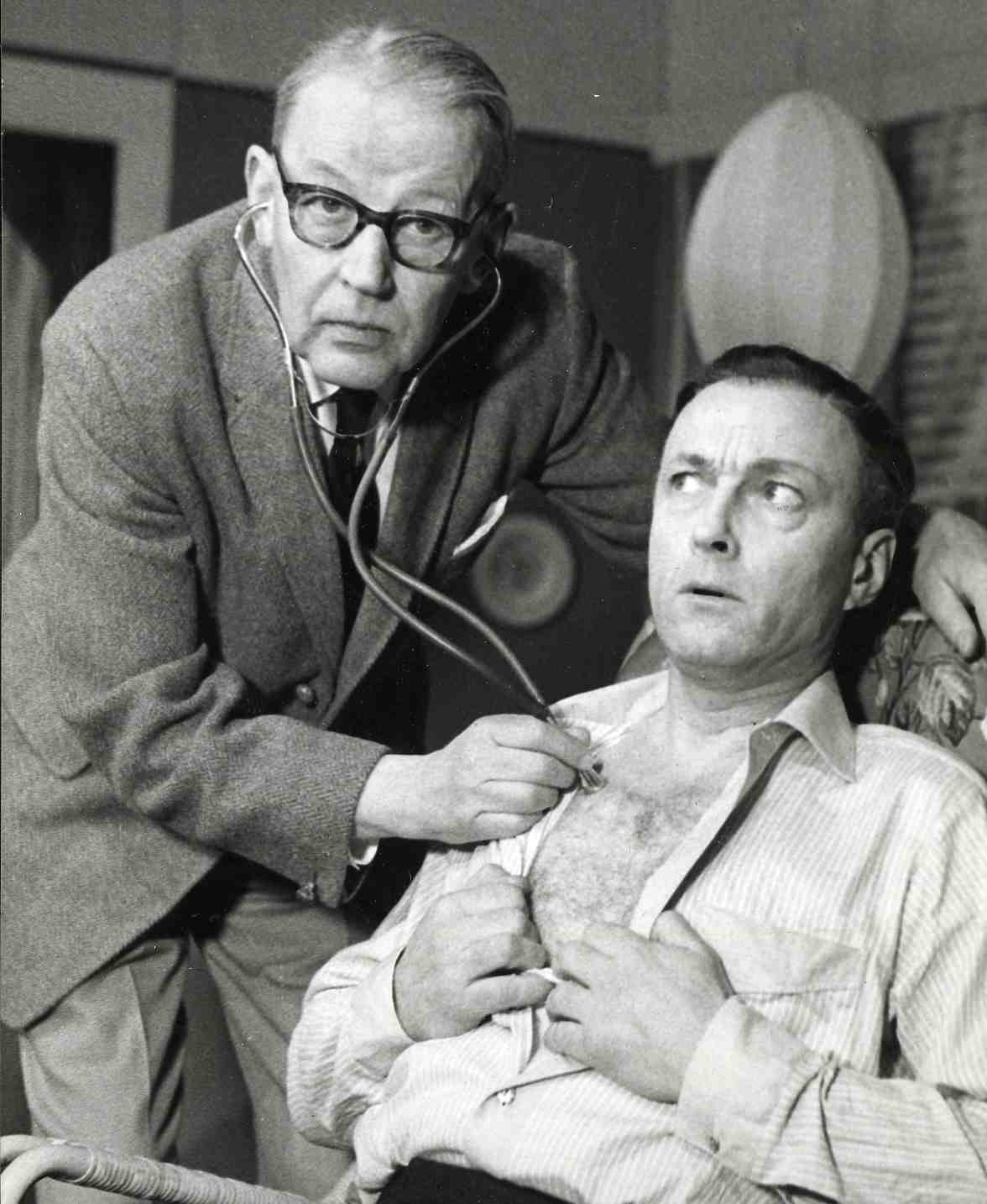 Fotografi fra Oslo Nye Teaters produksjon Ingen blomster, takk (1964)