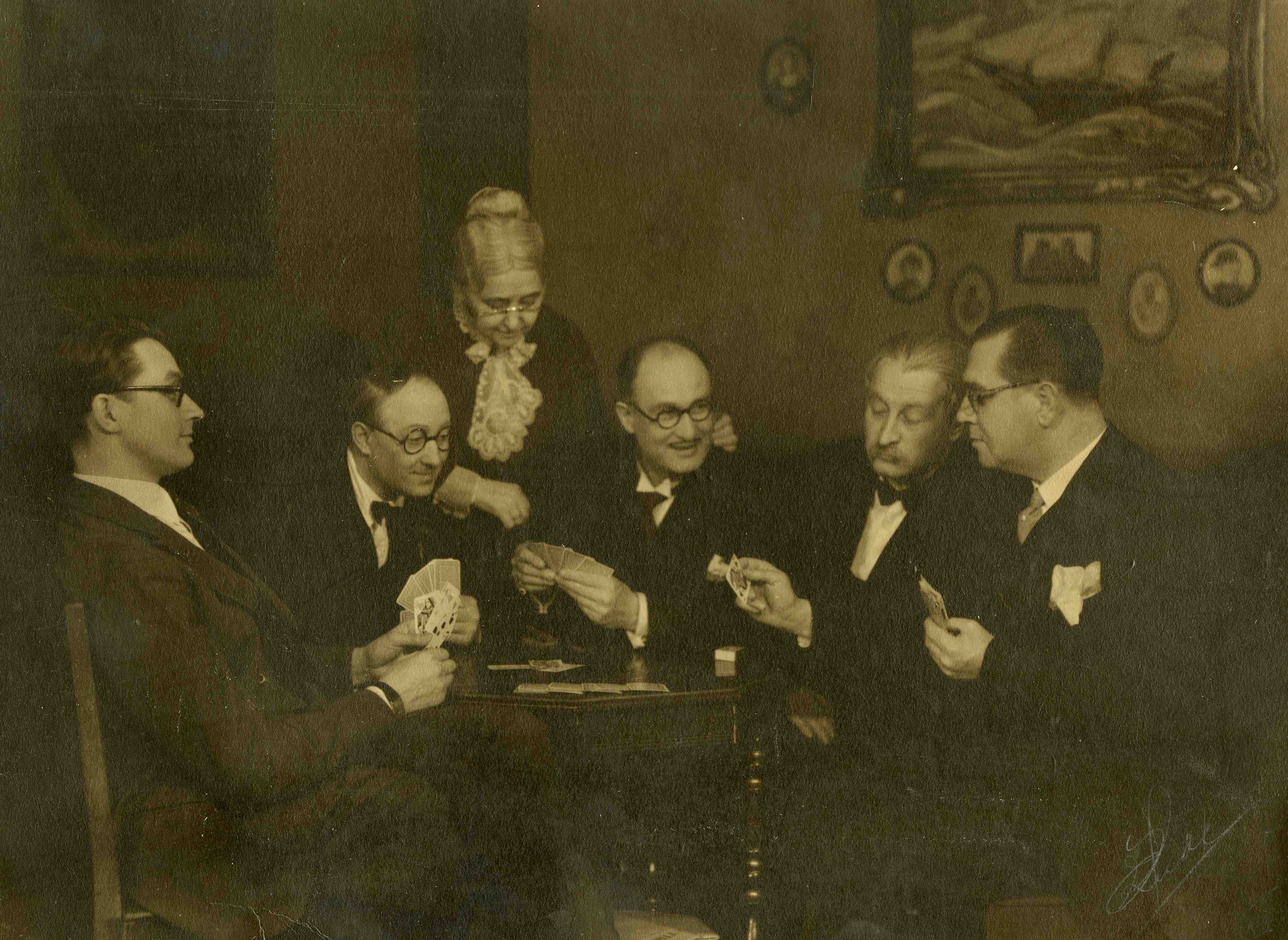 På bildet: Fridtjof Mjøen, Jens Holstad, Hilda Fredriksen, Thoralf Klouman, Folkman Schaanning, Eugen Skjønberg