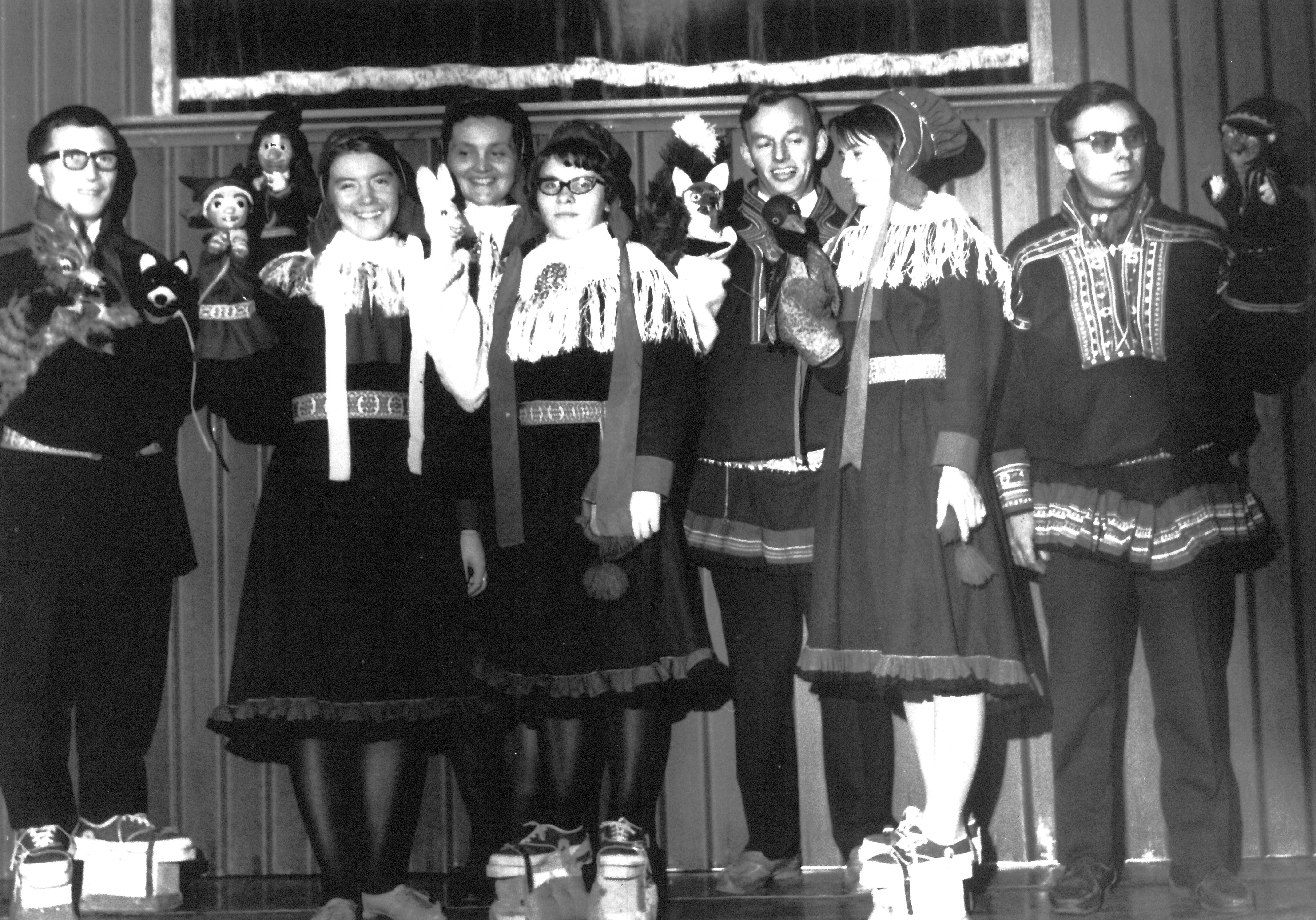 Fotografi fra Folketeatrets produksjon av Mikko Matti og vennene hans (1954 og 1966).