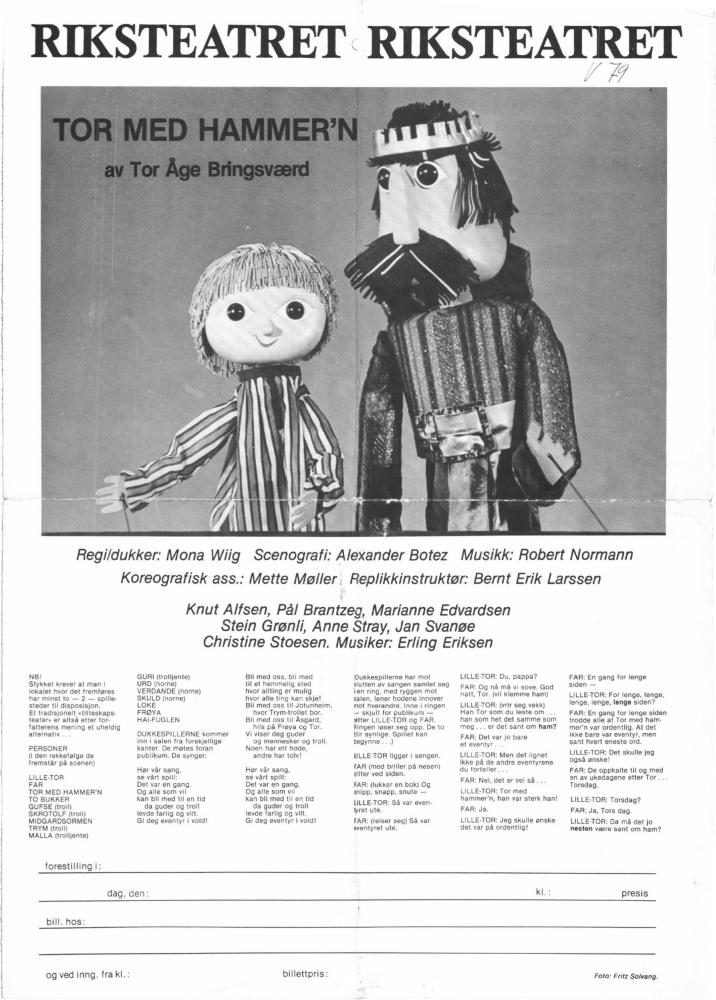 Program for Riksteatrets produksjon Tor med hammer'n (1979).
