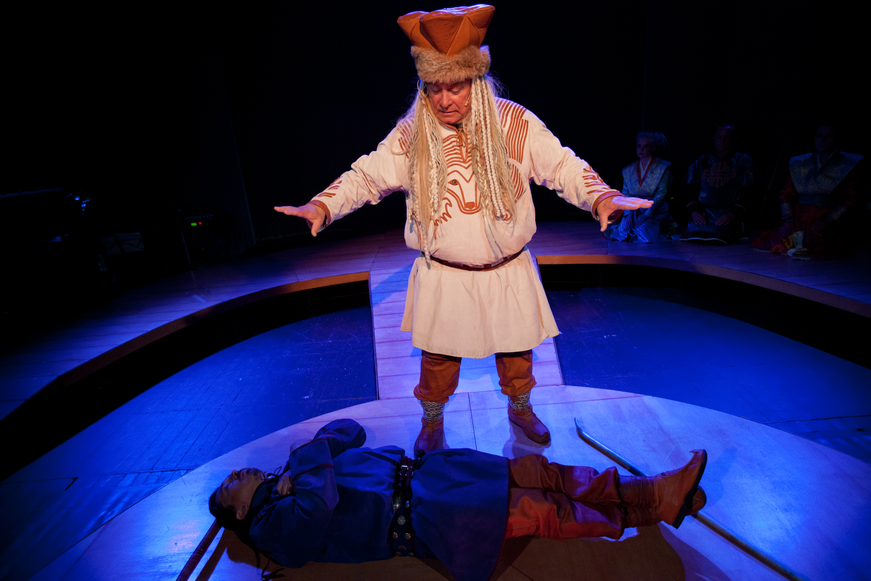 Fotografi fra Beaivváš Sámi Našunálateáhters produksjon Den rimhåra og draumesjåaren (2013)
