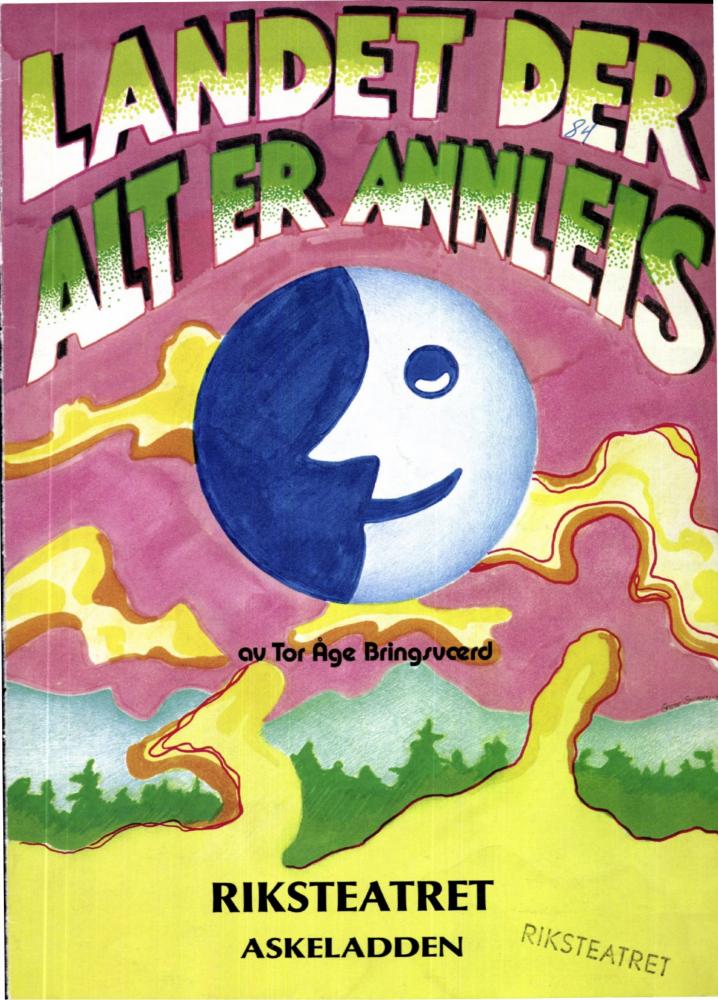 Program fra Riksteatrets produksjon Landet der alt er annleis (1984).