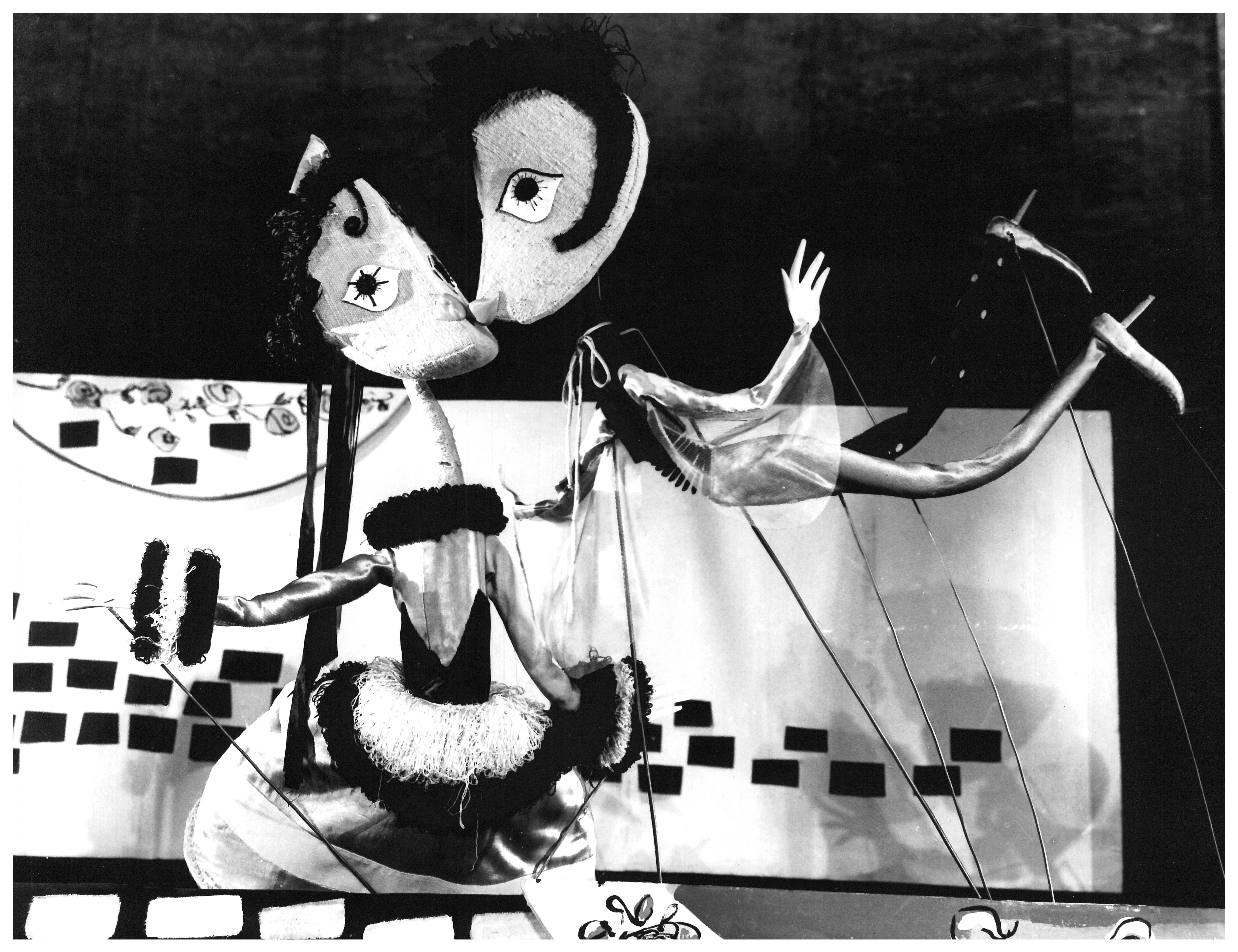 Fotografi fra Tandarica Teaters produksjon Don Christobals tre koner (1965). Produksjonen var på turné med Riksteatret i 1970.