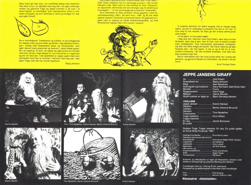 Program fra Riksteatrets produksjon Jeppe Jansens giraff (1984).