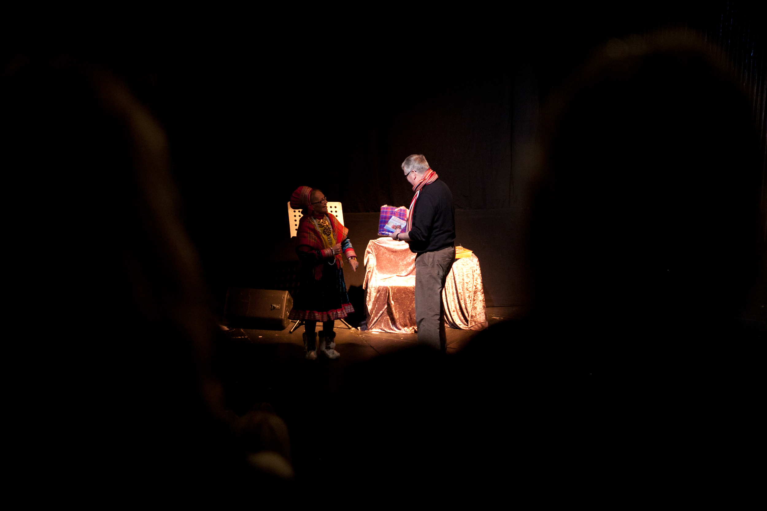 Fotografi fra Beaivváš Sámi Našunálateáhters produksjon Skábmačuovggas / I mørketidslys (2012)