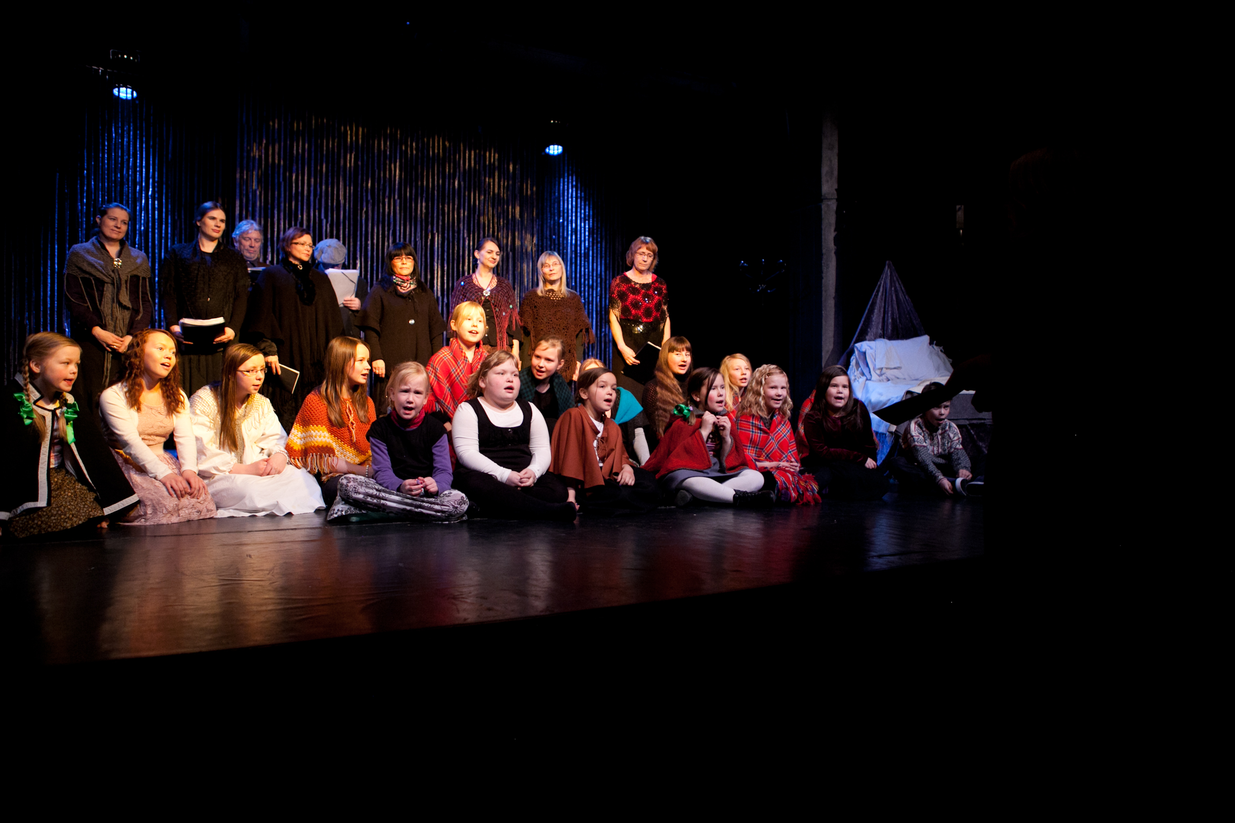 Fotografi fra Beaivváš Sámi Našunálateáhters produksjon Skábmačuovggas / I mørketidslys (2012)