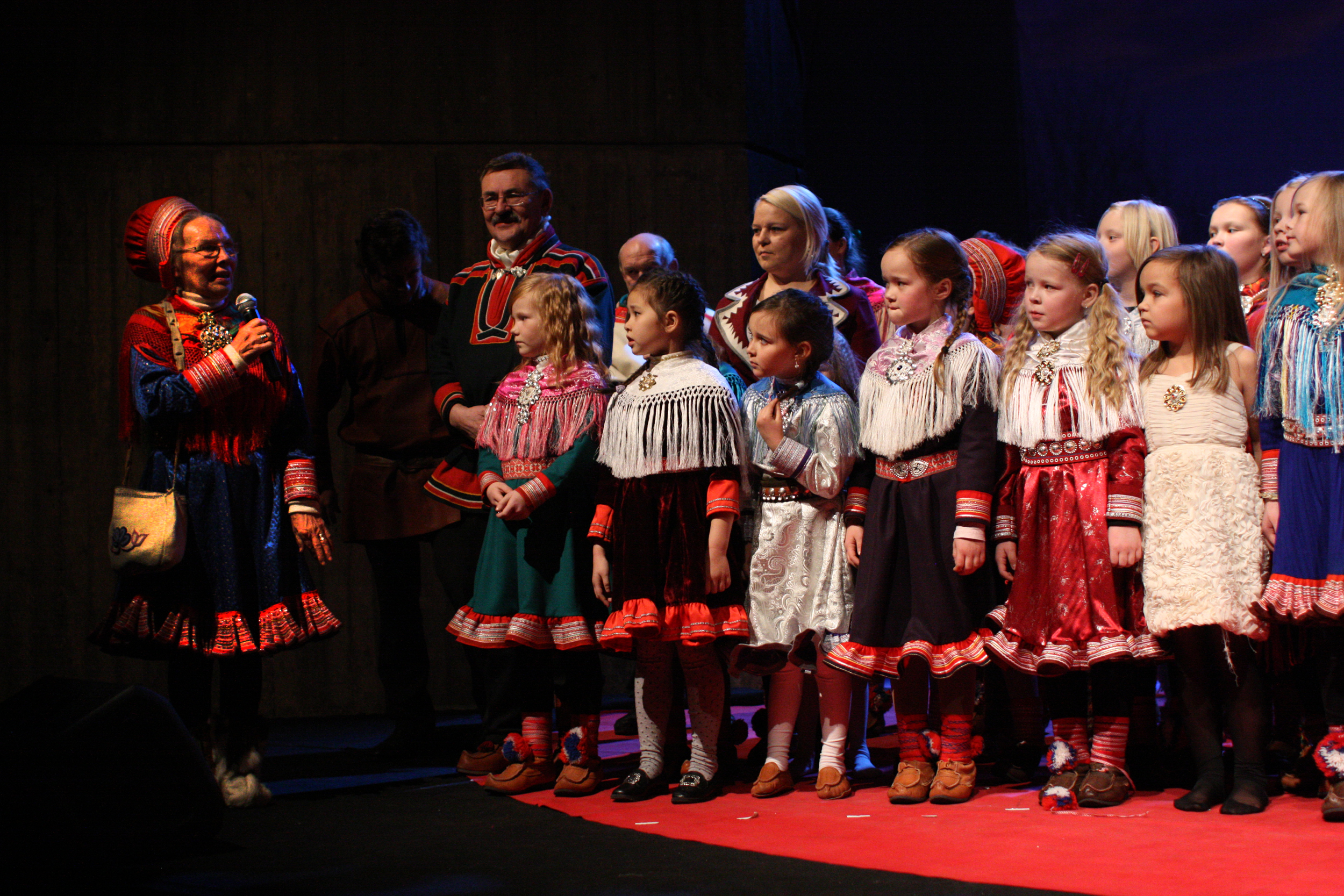 På bildet: Gunhild Berit Sara, Dimitri Joavku og Kulturskolens sangkor