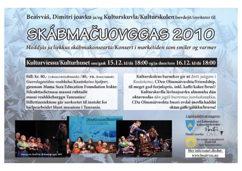 Flyer av Beaivváš Sámi Našunálateáhters produksjon Skábmačuovggas / I mørketidslys (2010)