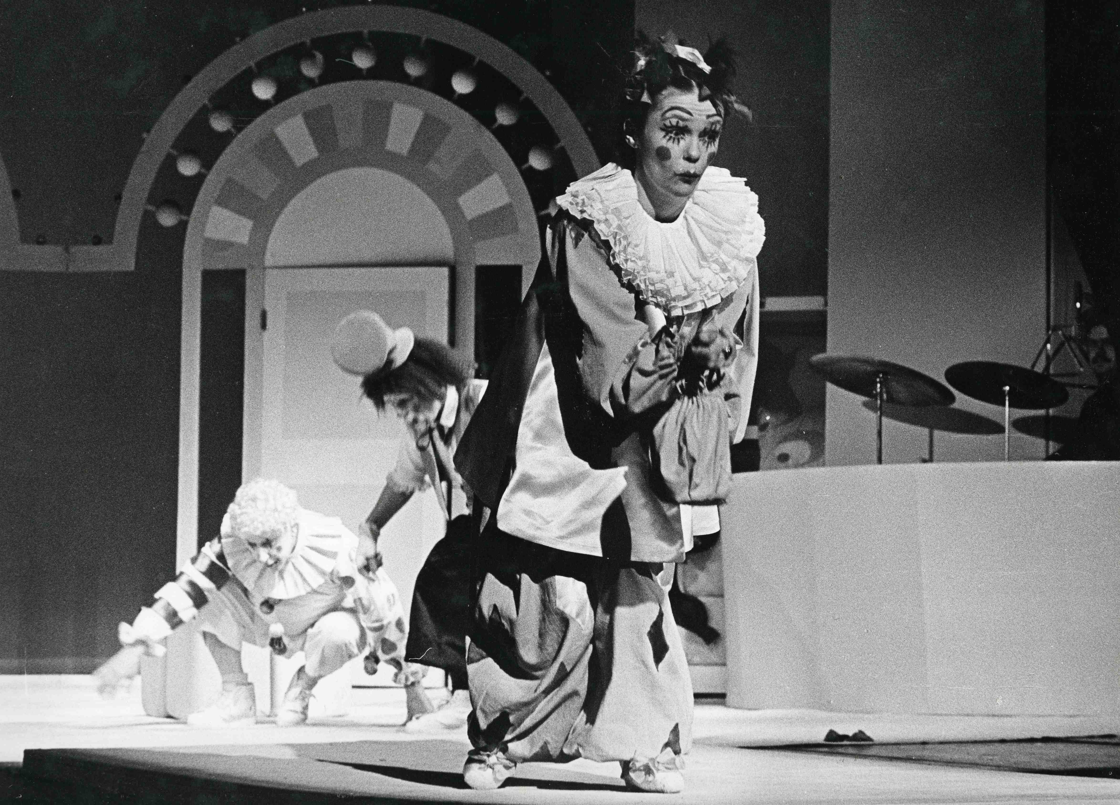 Fotografi fra Oslo Nye Teaters produksjon Klovneskolen (1980).