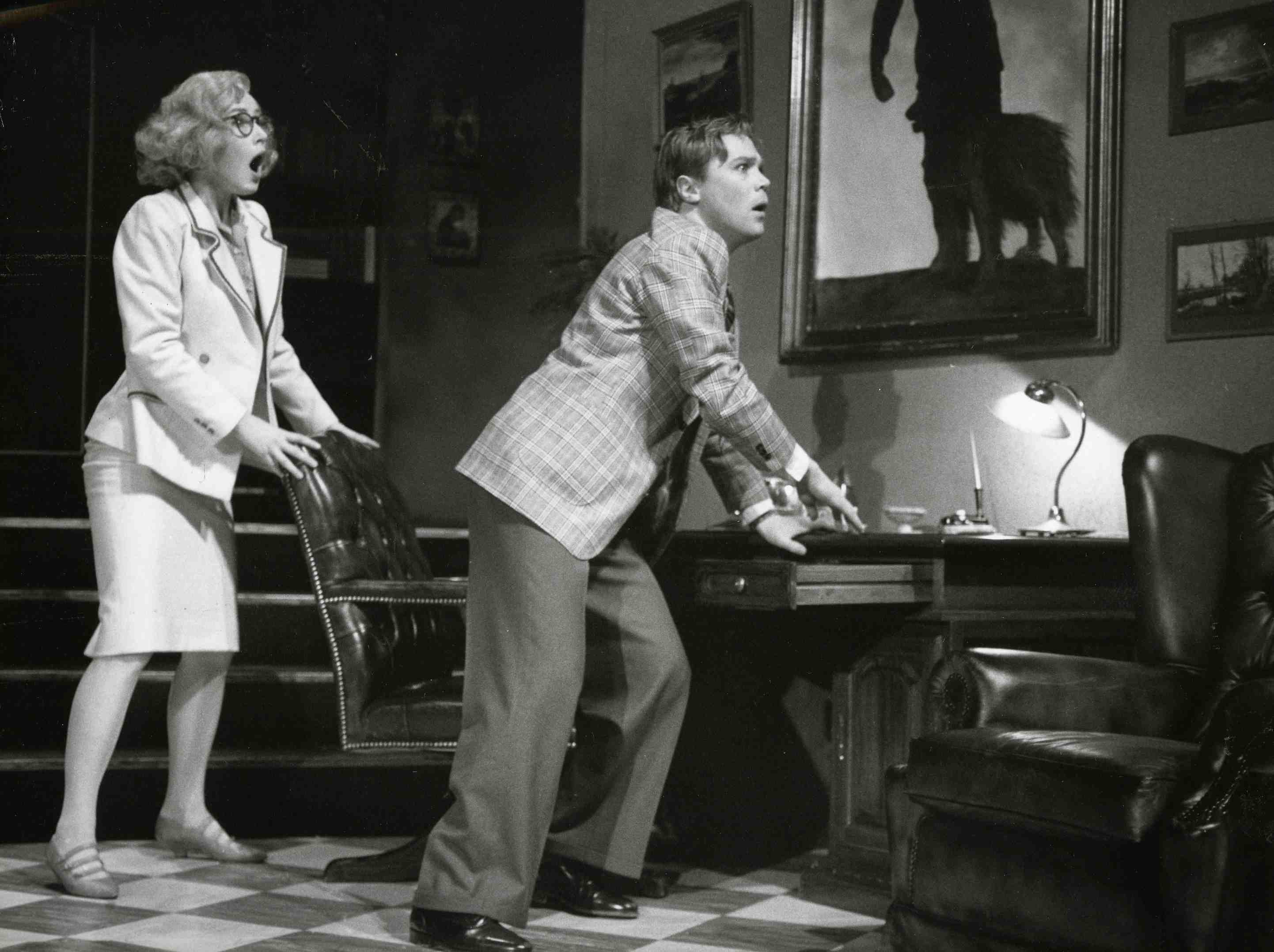 Fotografi fra Oslo Nye Teaters produksjon Komediemordene av 1940 (1989).
