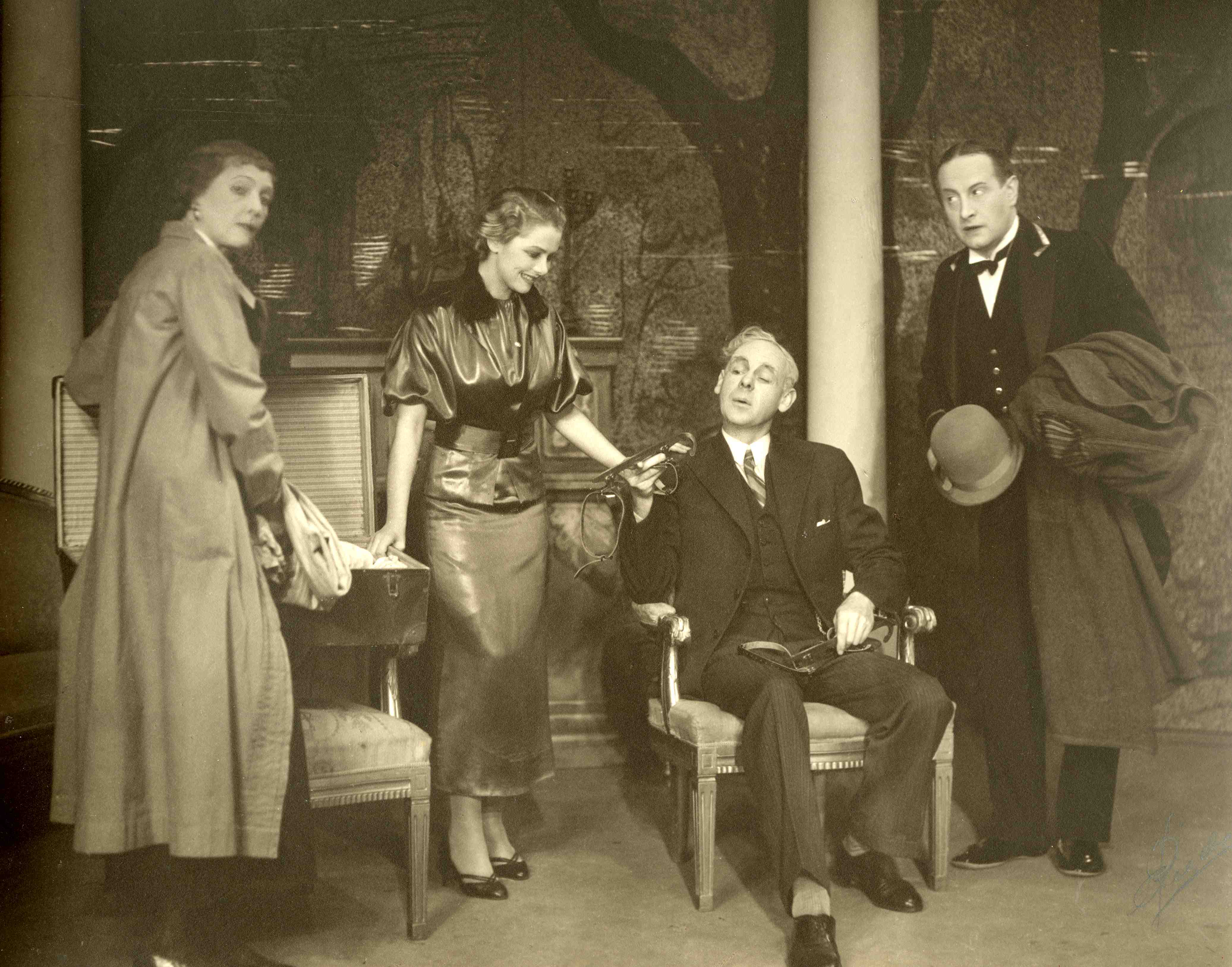 Fotografi fra Det Nye Teaters produksjon De rike har det godt (1935)