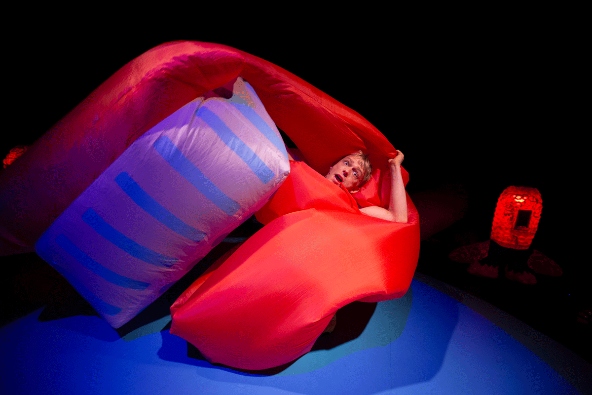Fotografi fra Agder Nye Teaters produksjon Hundrevis av barn i vill kamp (2020)
