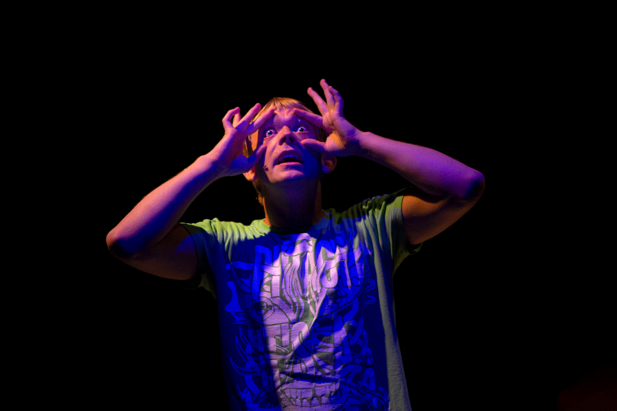 Fotografi fra Agder Nye Teaters produksjon Hundrevis av barn i vill kamp (2020)