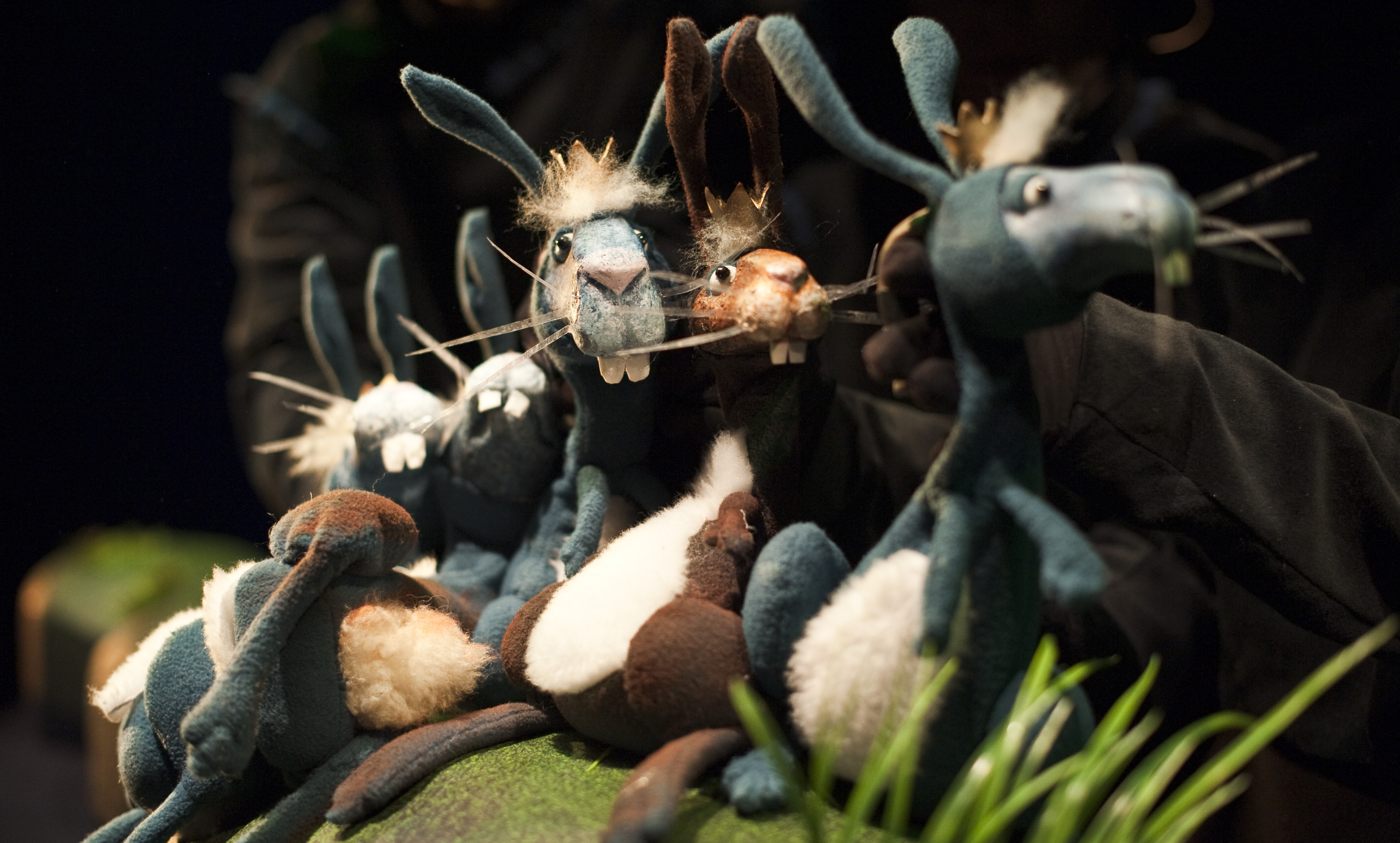 Fotografi fra Riksteatrets produksjon Askeladden og kongens harer (2009)