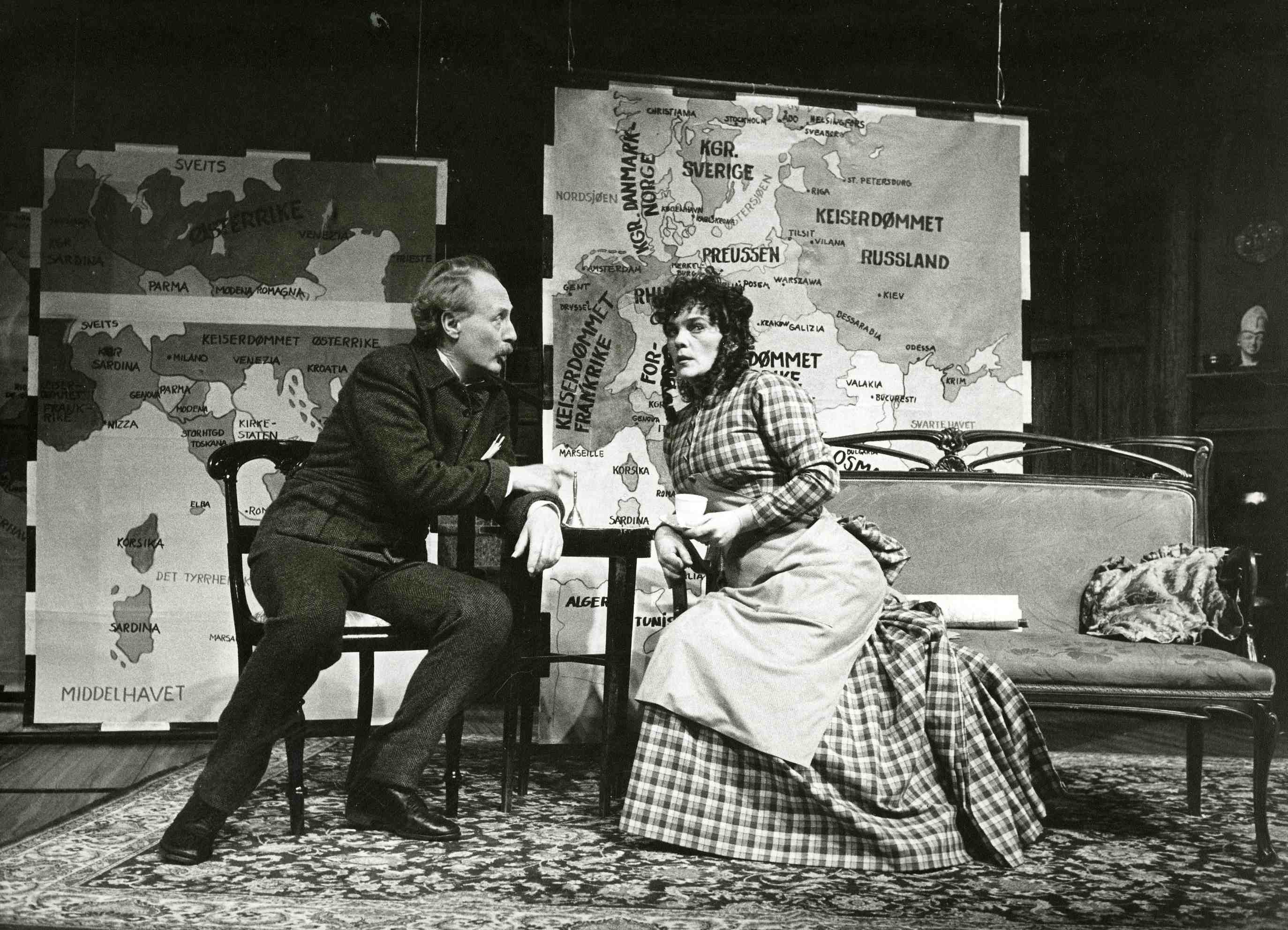 Fotografi fra Oslo Nye Teaters produksjon Geografi og kjærlighet (1986).