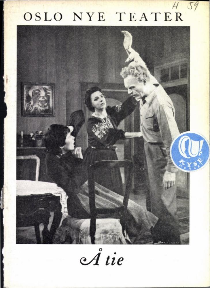 Forestillingsprogram for Oslo Nye Teaters produksjon Å tie (1959).