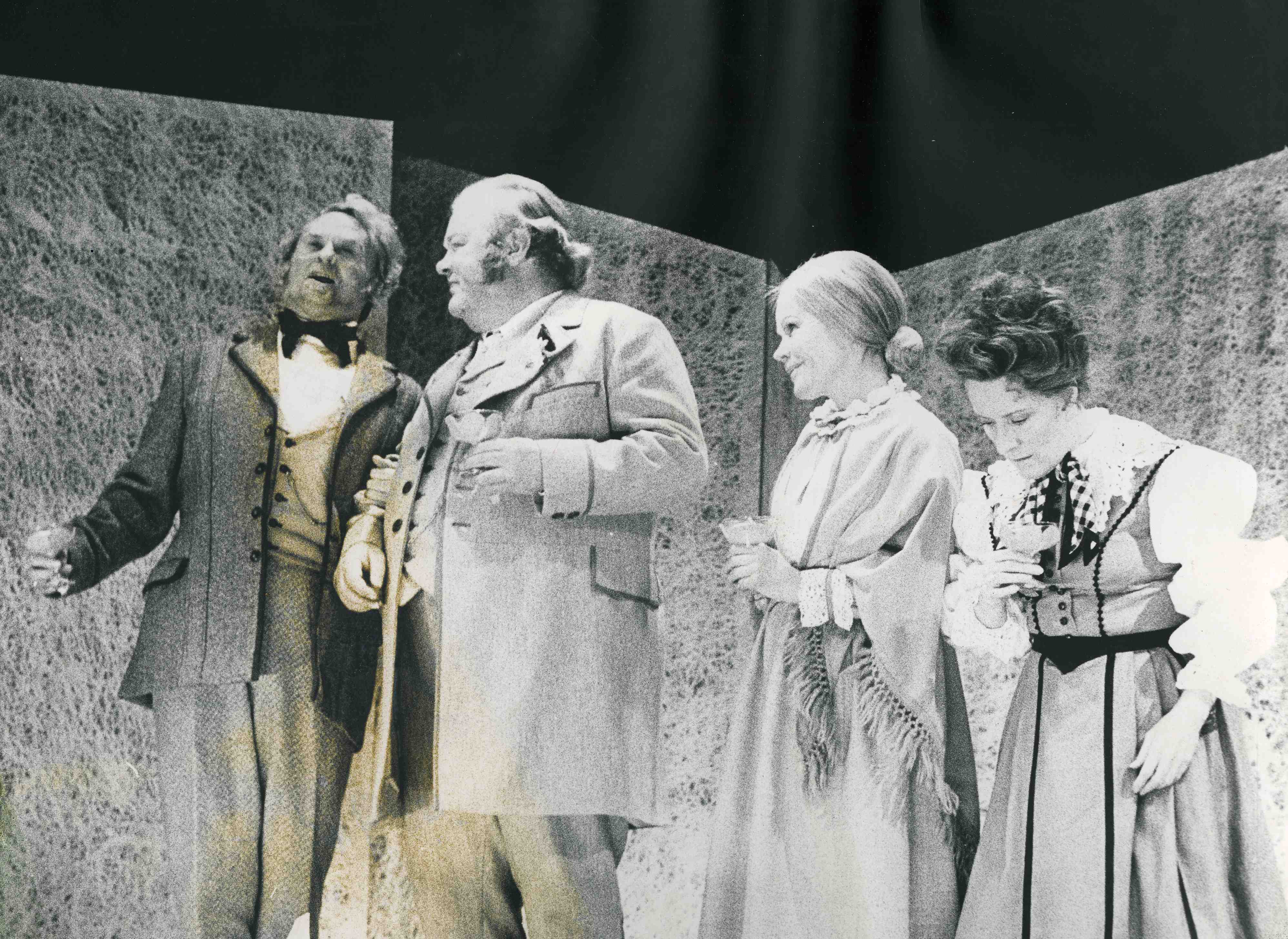 Fotografi fra Oslo Nye Teaters produksjon Kjærlighetens komedie (1973).
