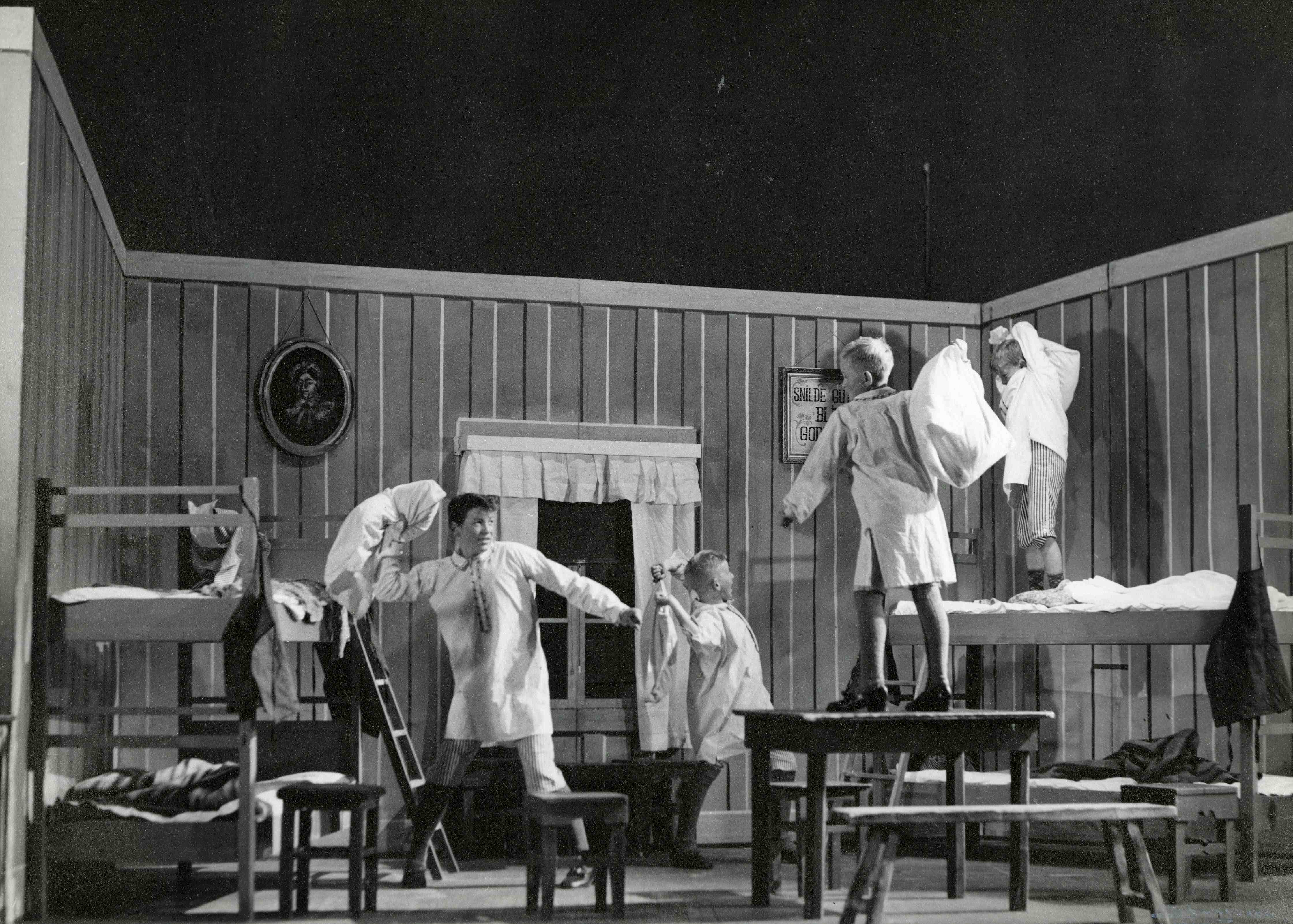 Fotografi fra Oslo Nye Teaters produksjon Rasmus på loffen (1962).