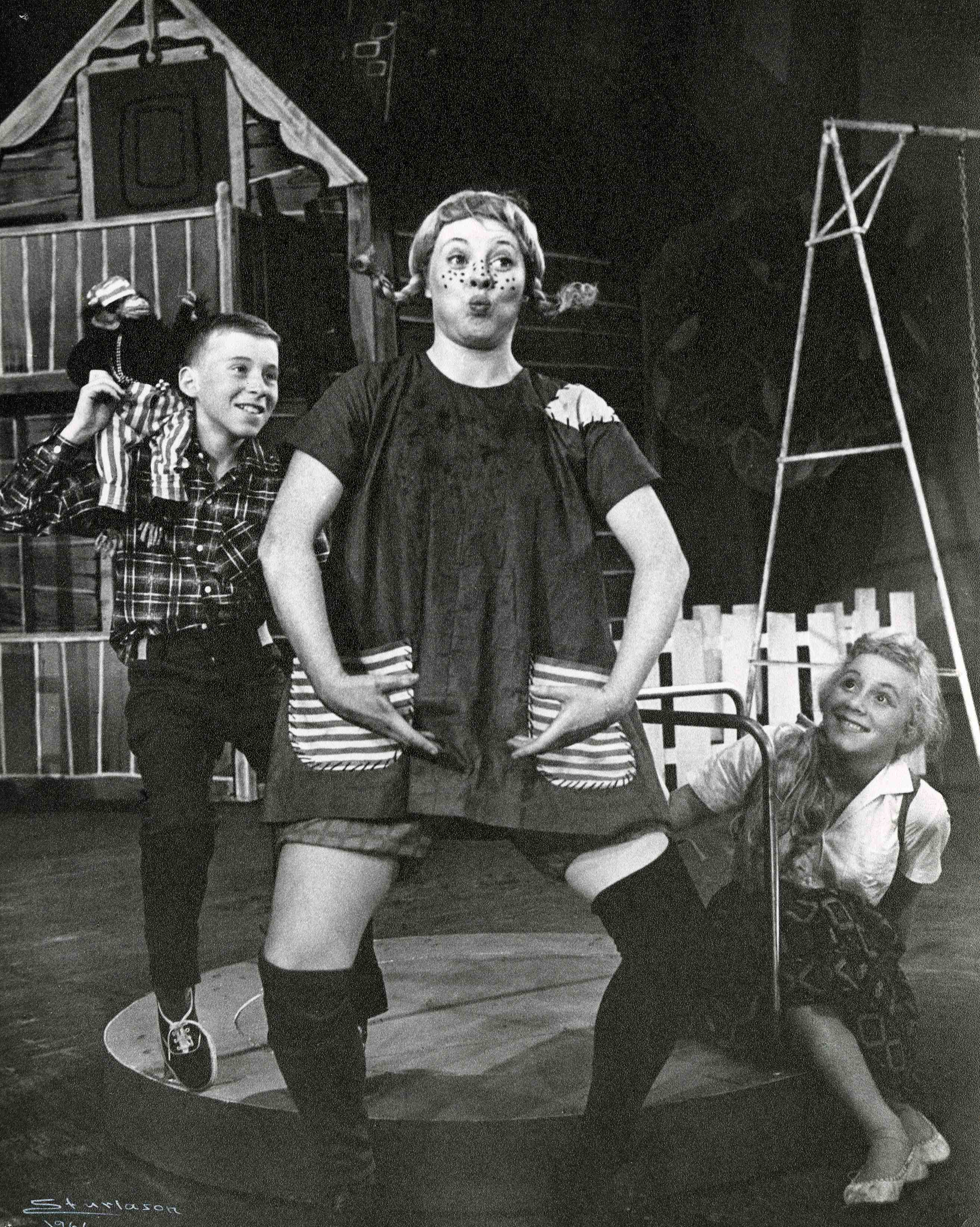 Fotografi fra Oslo Nye Teaters produksjon Pippi Langstrømpe (1961).