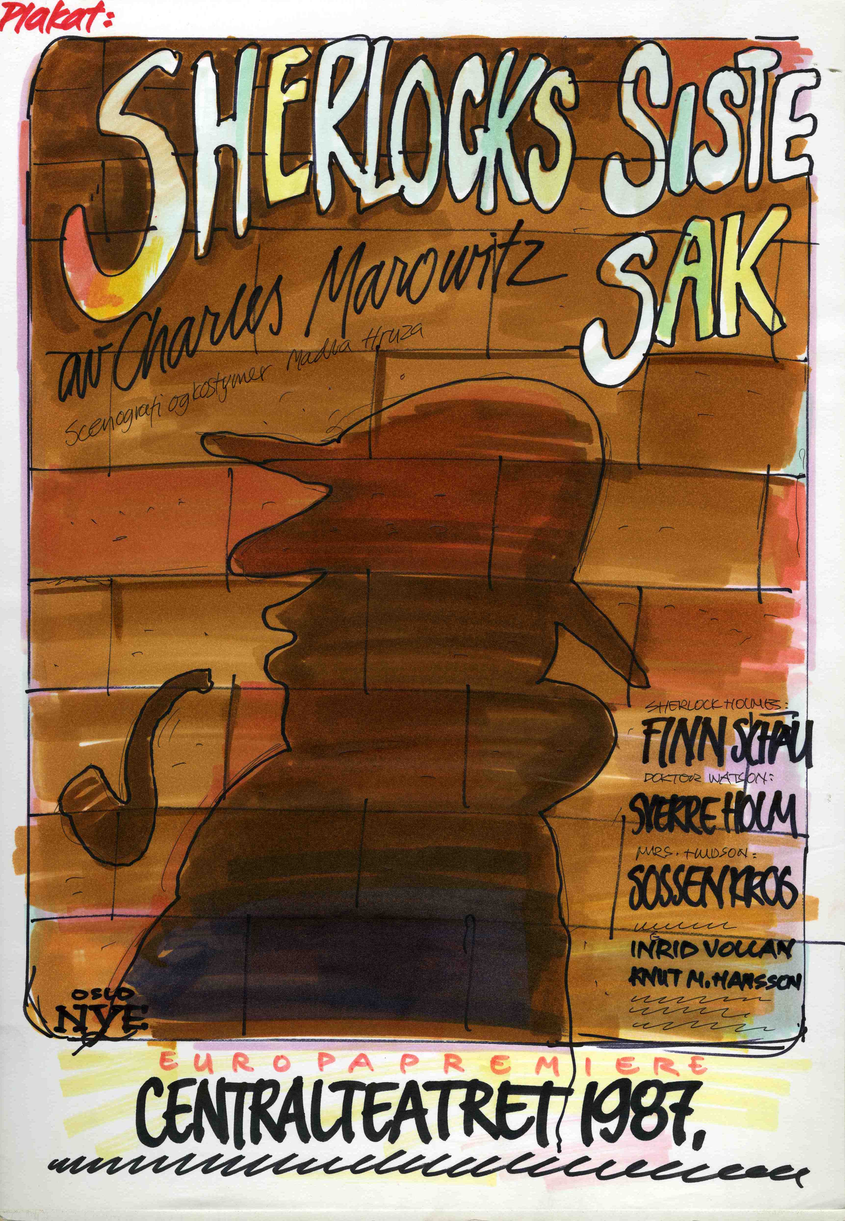 Plakat fra Oslo Nye Teaters produksjon Sherlocks siste sak (1987).