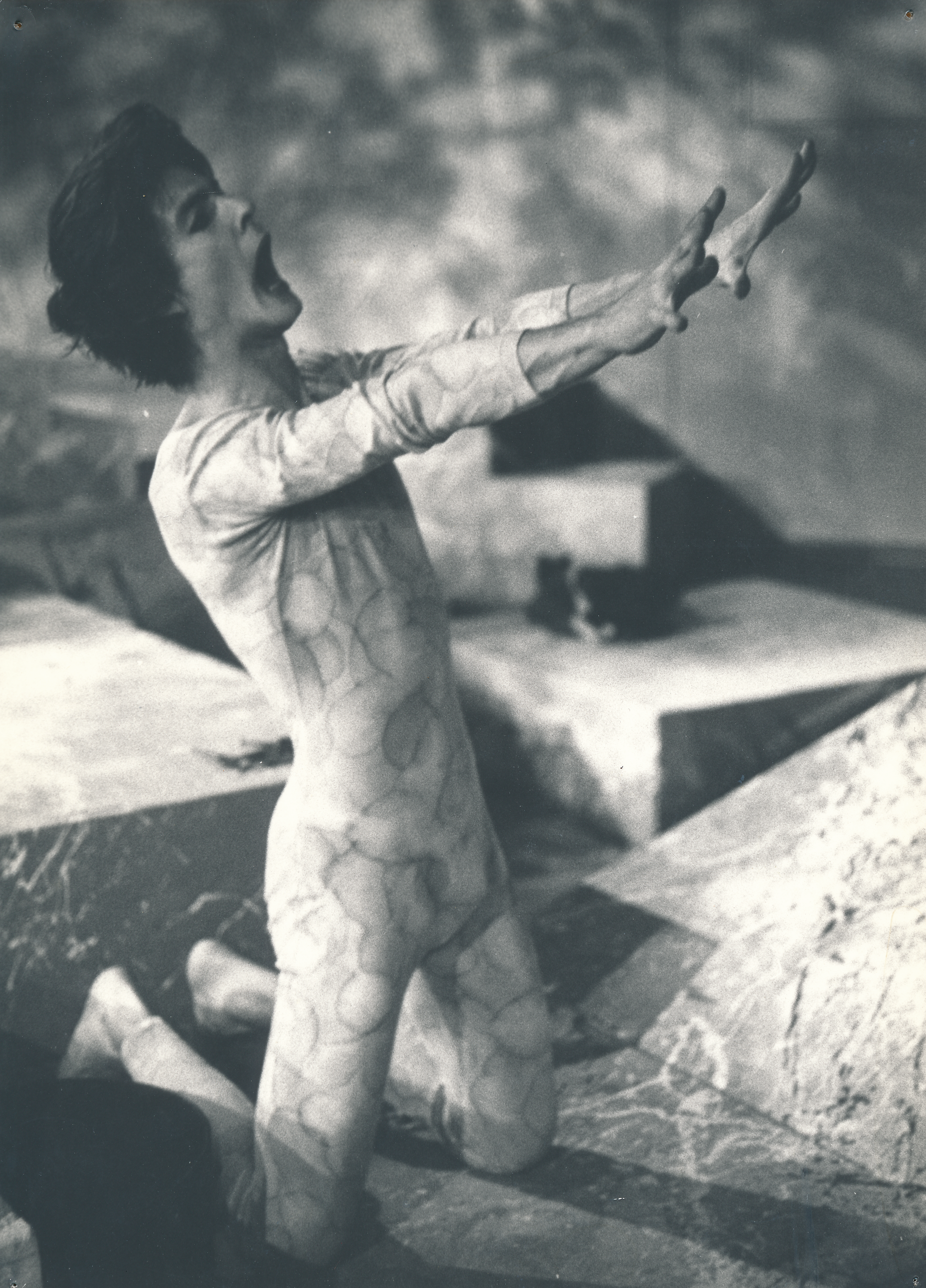 Fotografi fra Statens teaterskoles elevvisning Arkitekten og keiseren av Assyria, regi: Sverre Rødahl, 3.klasse instruktørutdanningen (1981)