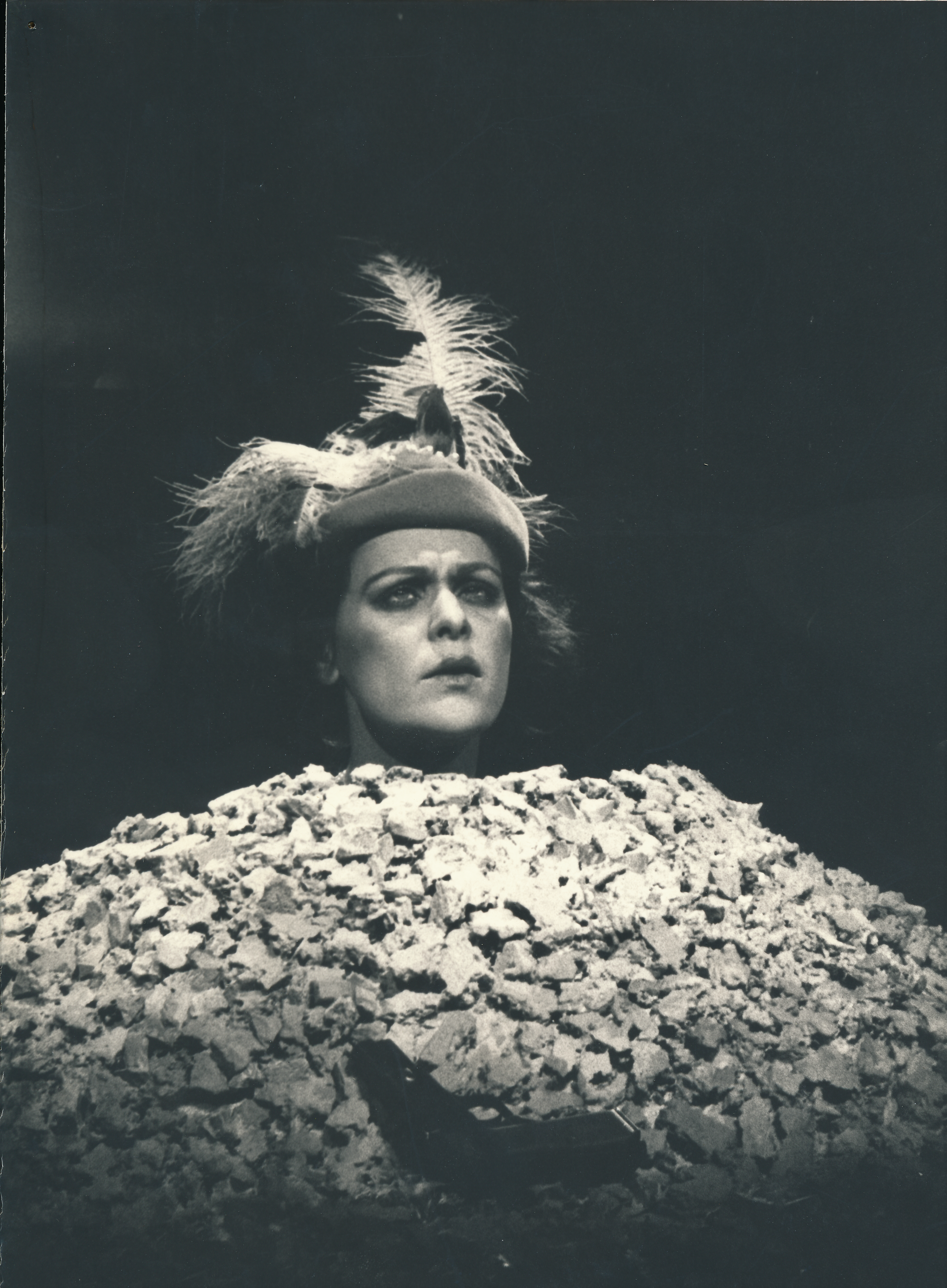 Fotografi fra Statens teaterskoles produksjon Deilige dager, 3.klasse instruktørutdanningen (1981)
