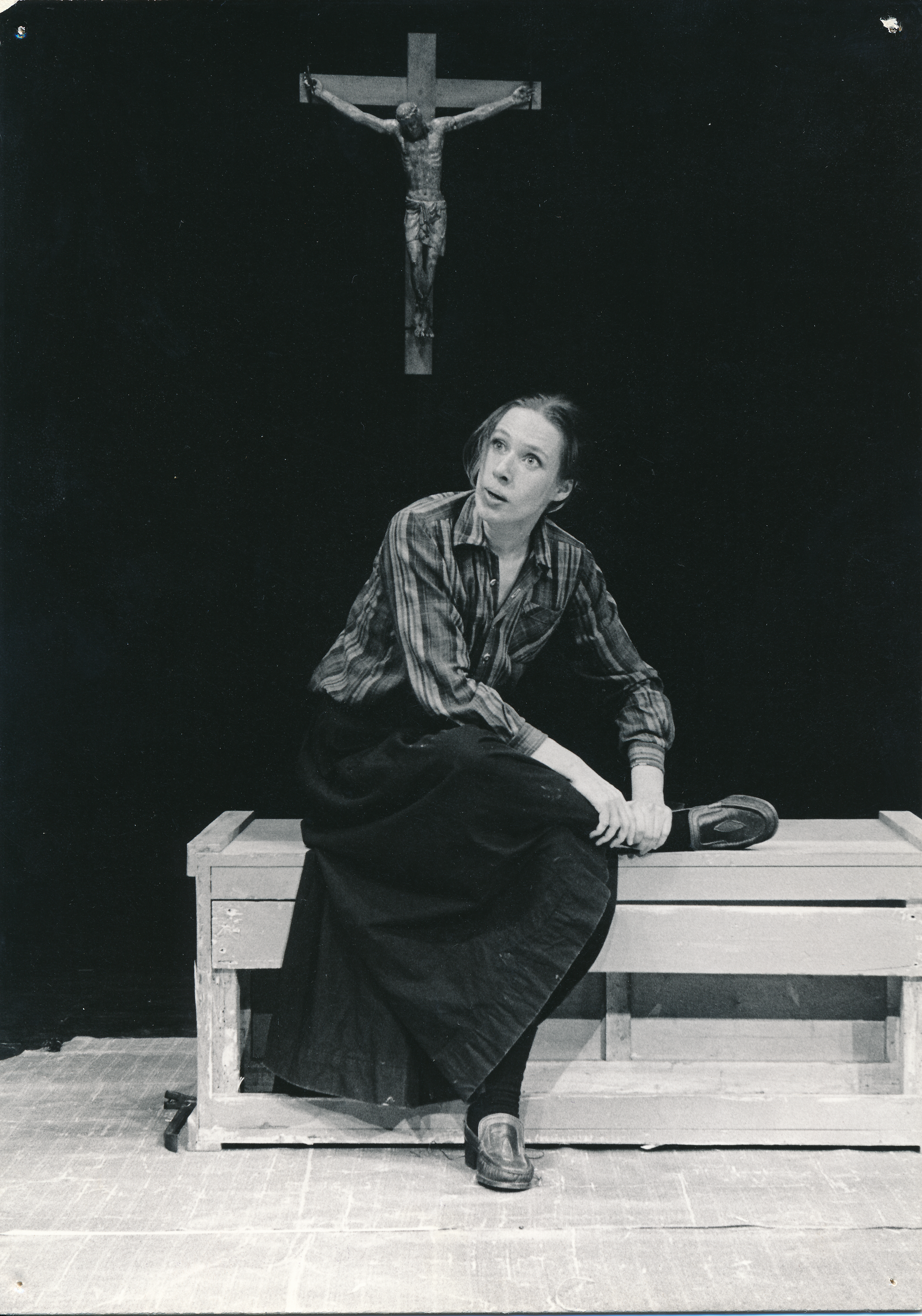 Fotografi fra Statens teaterskoles elevvisning Fru Carrars gevær (1975)