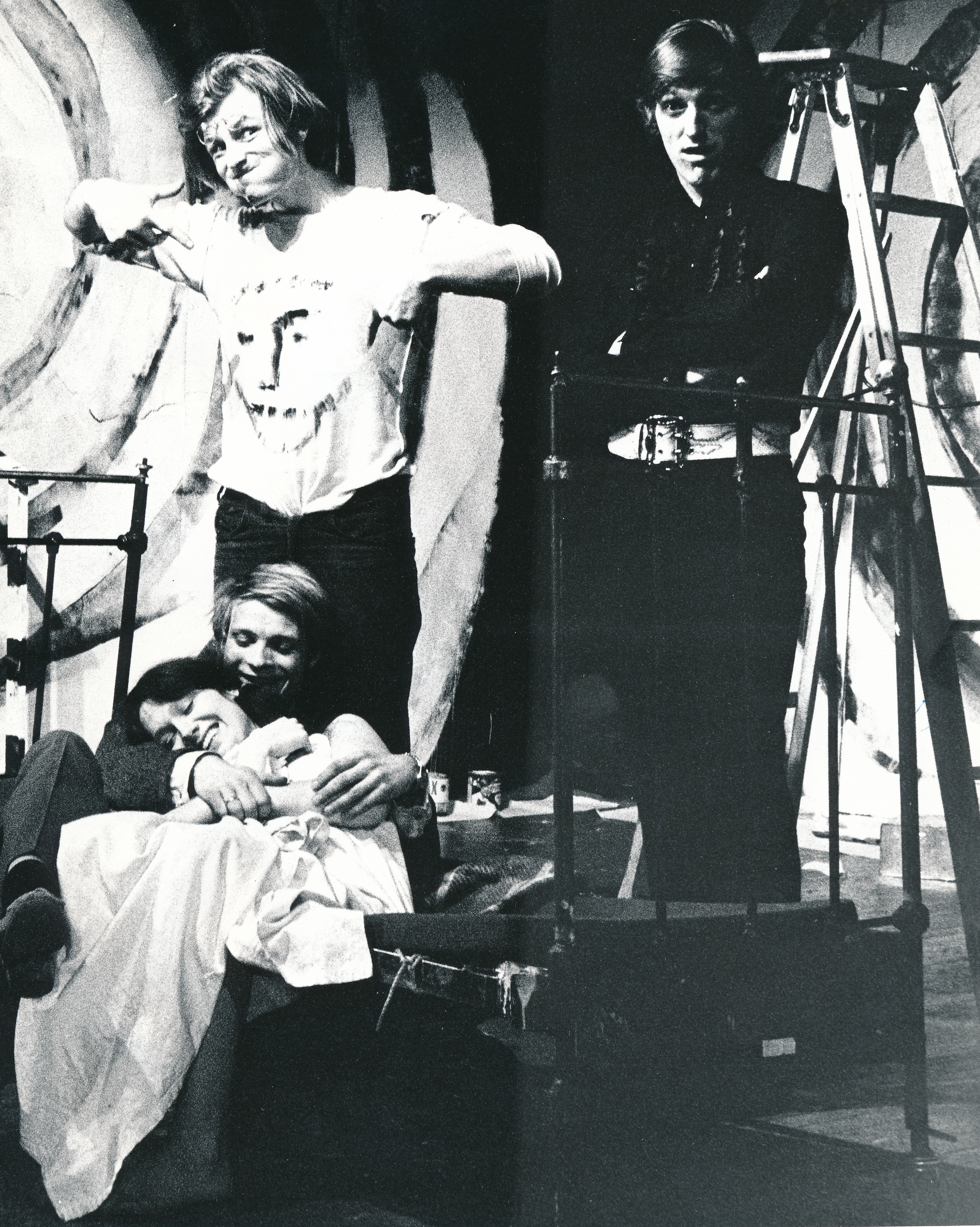 Fotografi fra Statens teaterskoles elevvisning Knepet med 4.klasse skuespillerutdanningen (1971)