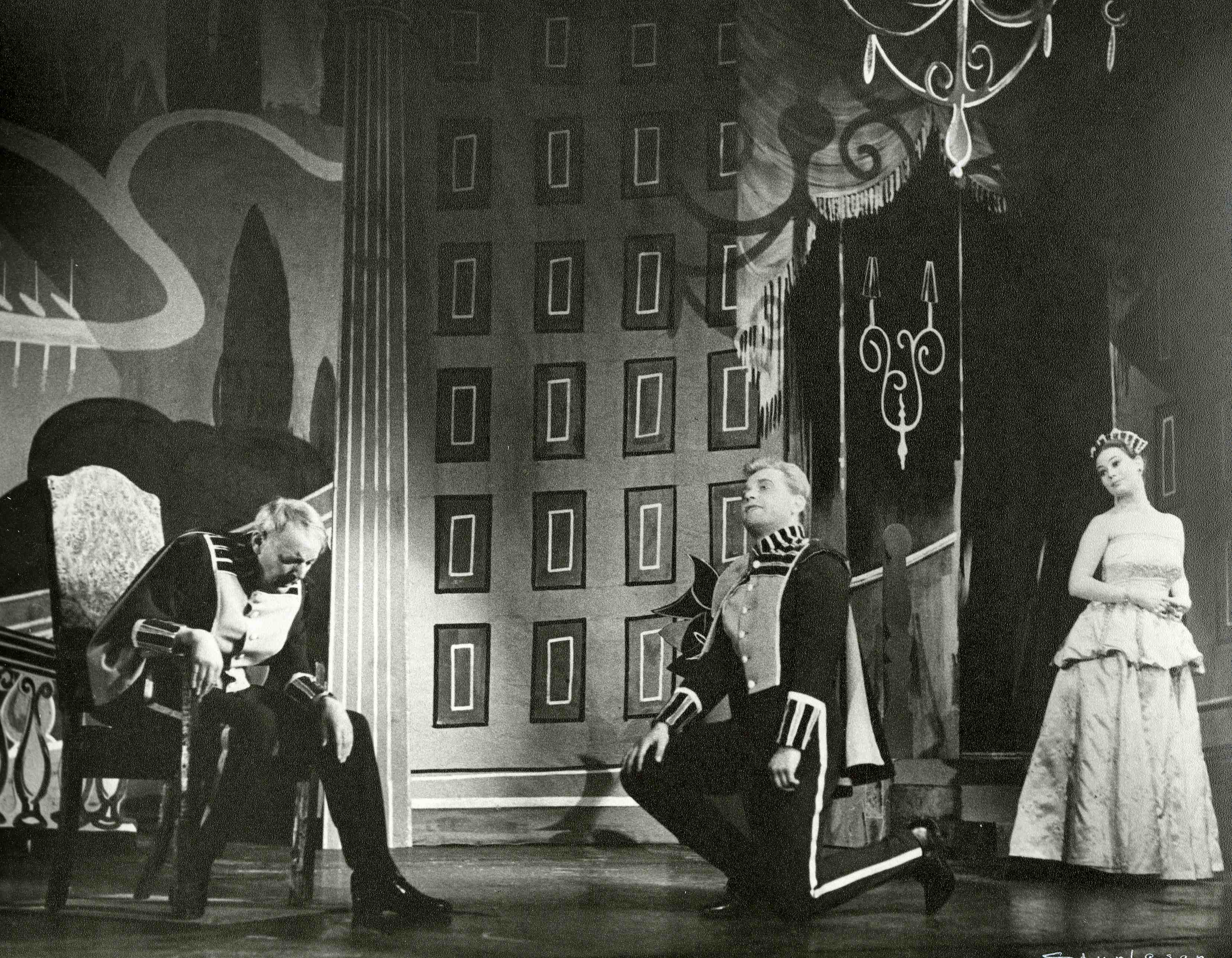 Fotografi fra Oslo Nye Teaters produksjon Det lyder som et eventyr (1961).