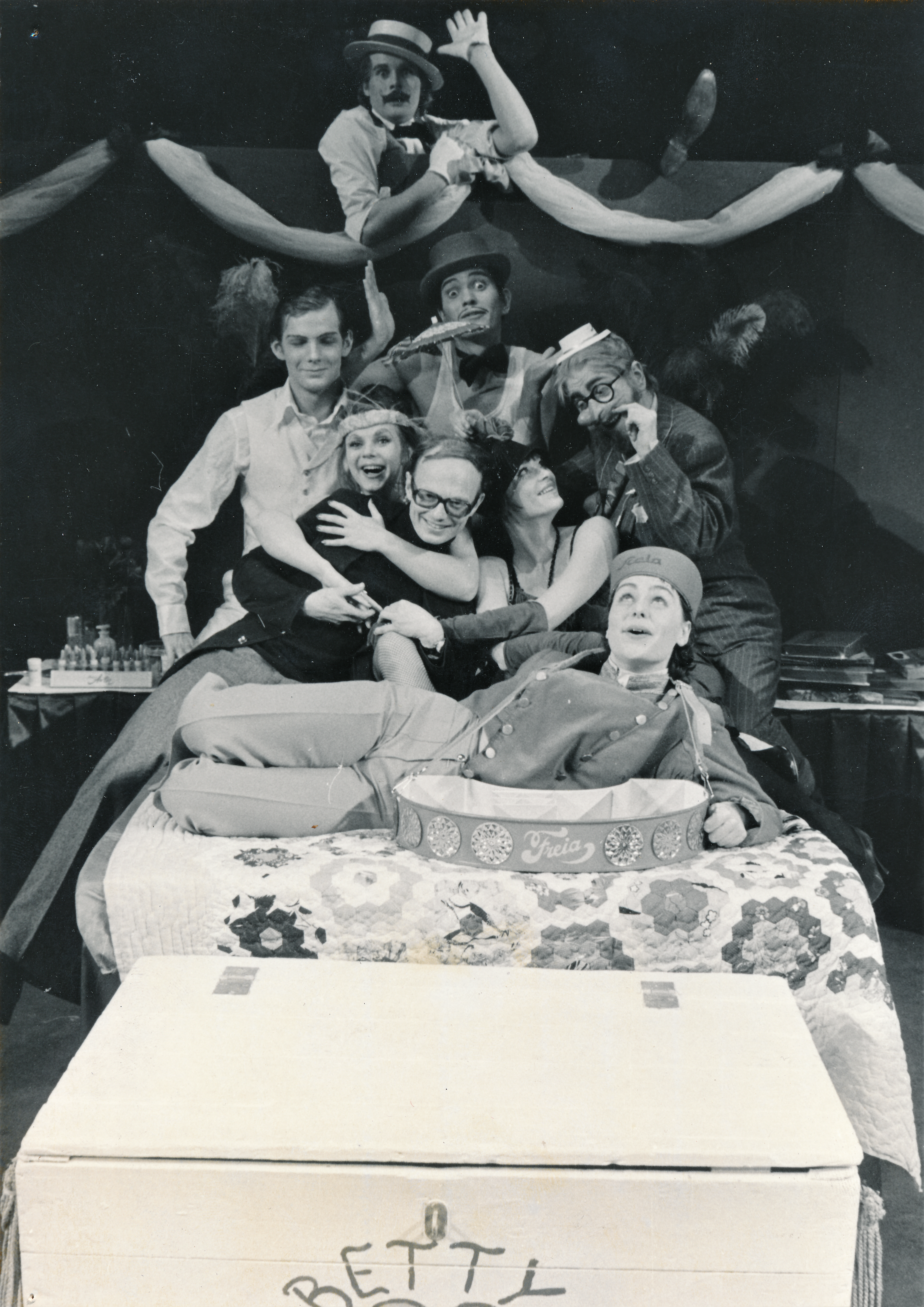Fotografi fra Statens teaterskoles elevvisning Piken i bilen med 3.klasse skuespillerutdanningen (1975)