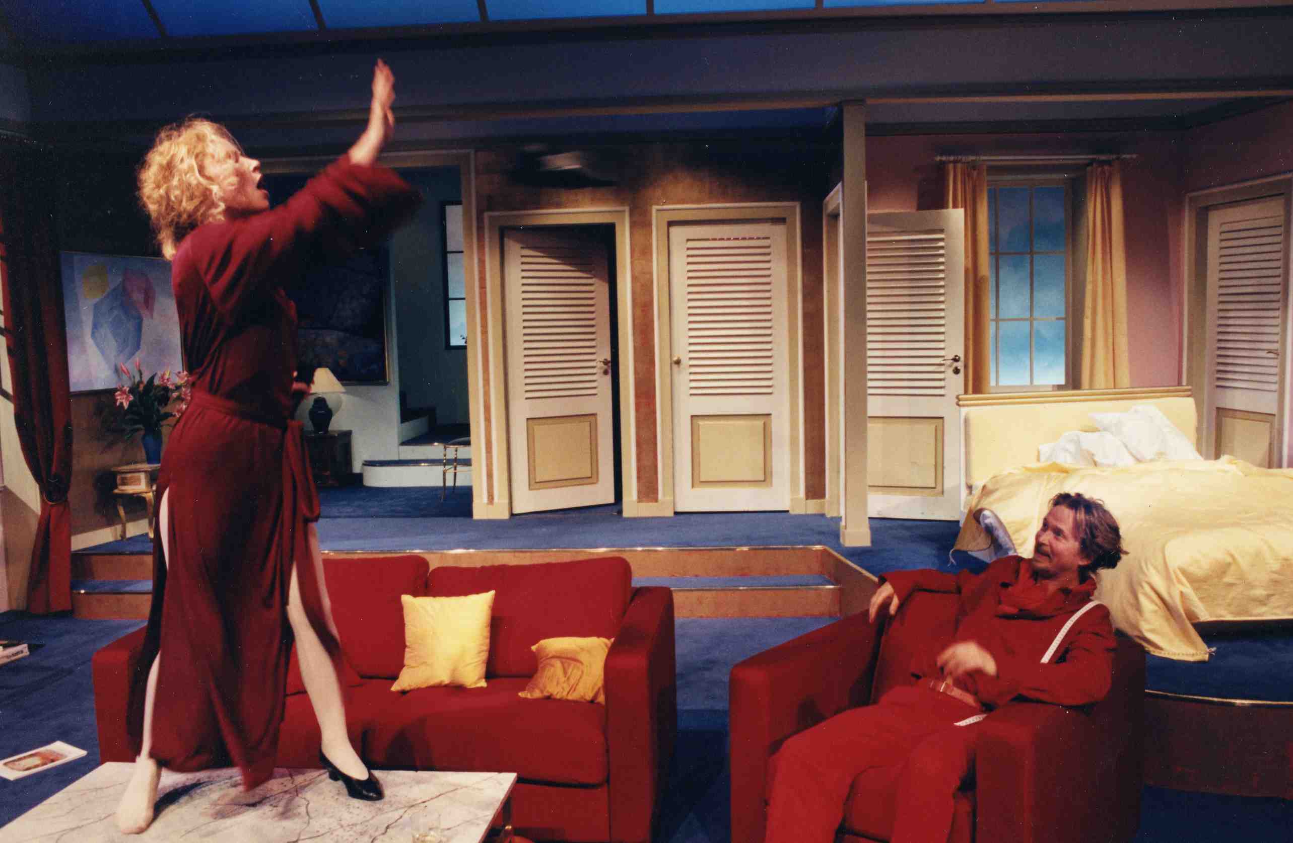 Fotografi fra Oslo Nye Teaters produksjon To fruer i en smekk (1996).