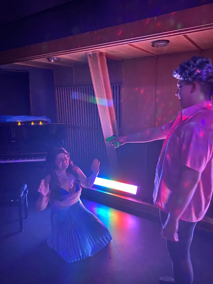 På bildet: Johanna Johansen og Ola Hesby. Bildet ble tatt under forestilling.