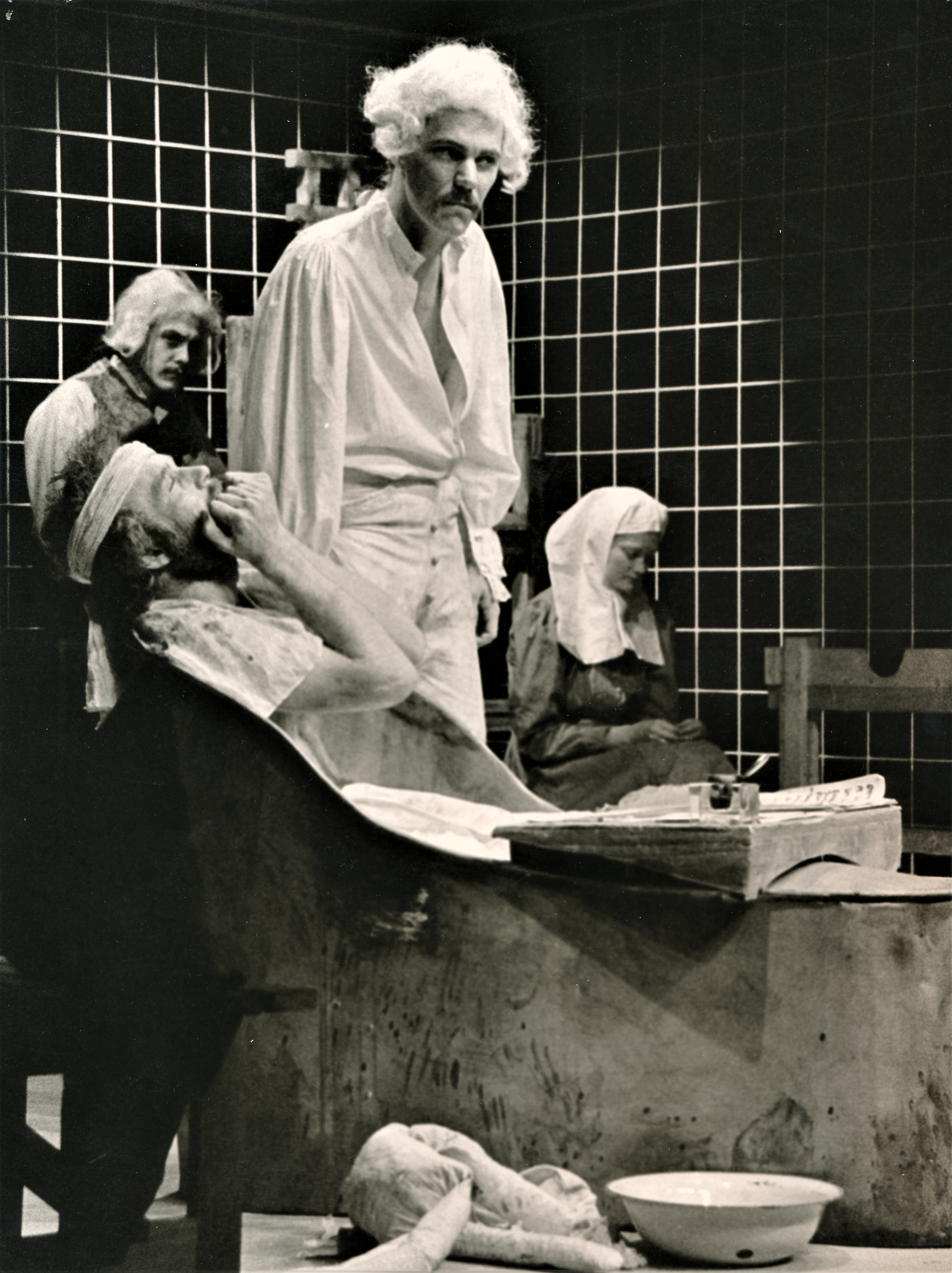 Fotografi fra Statens teaterskoles elevproduksjon Mordet på Marat (1976).