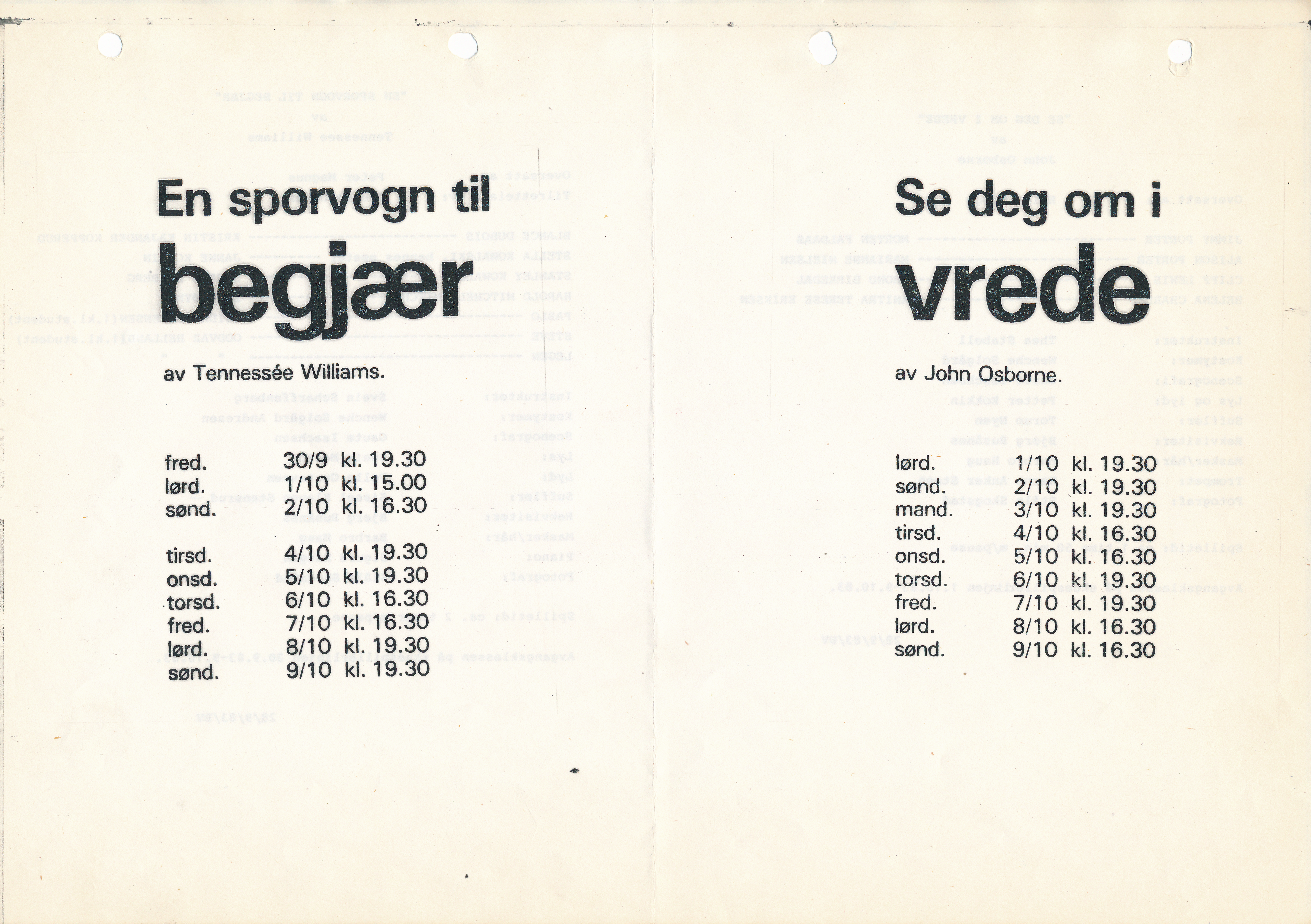Program til Statens teaterskoles elevvisning Se deg om i vrede og En sporvogn til begjær(1983)