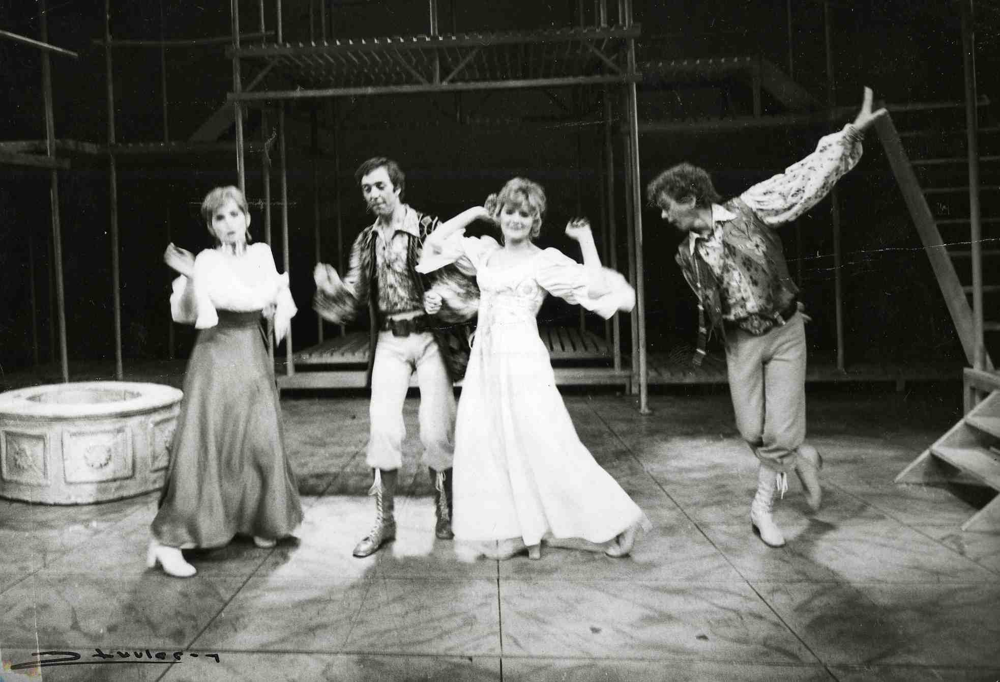 Fotografi fra Oslo Nye Teaters produksjon To muntre herrer fra Verona (1973).