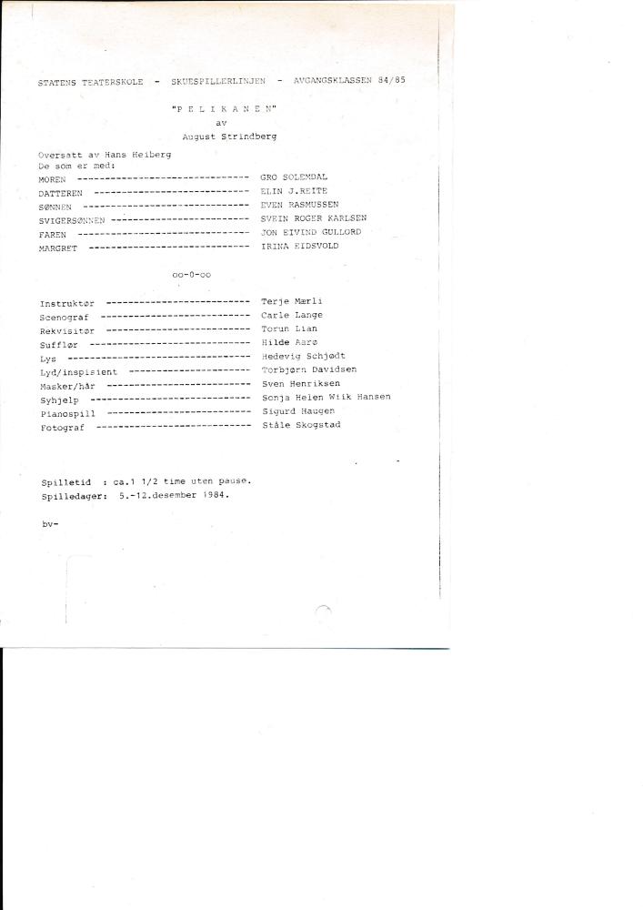 Program til Statens teaterskoles elevvisning Pelikanen (1984)
