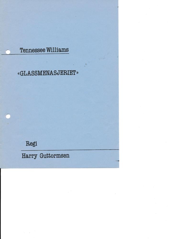 Program til Statens teaterskoles elevproduksjon Glassmenasjeriet side 1(1984)